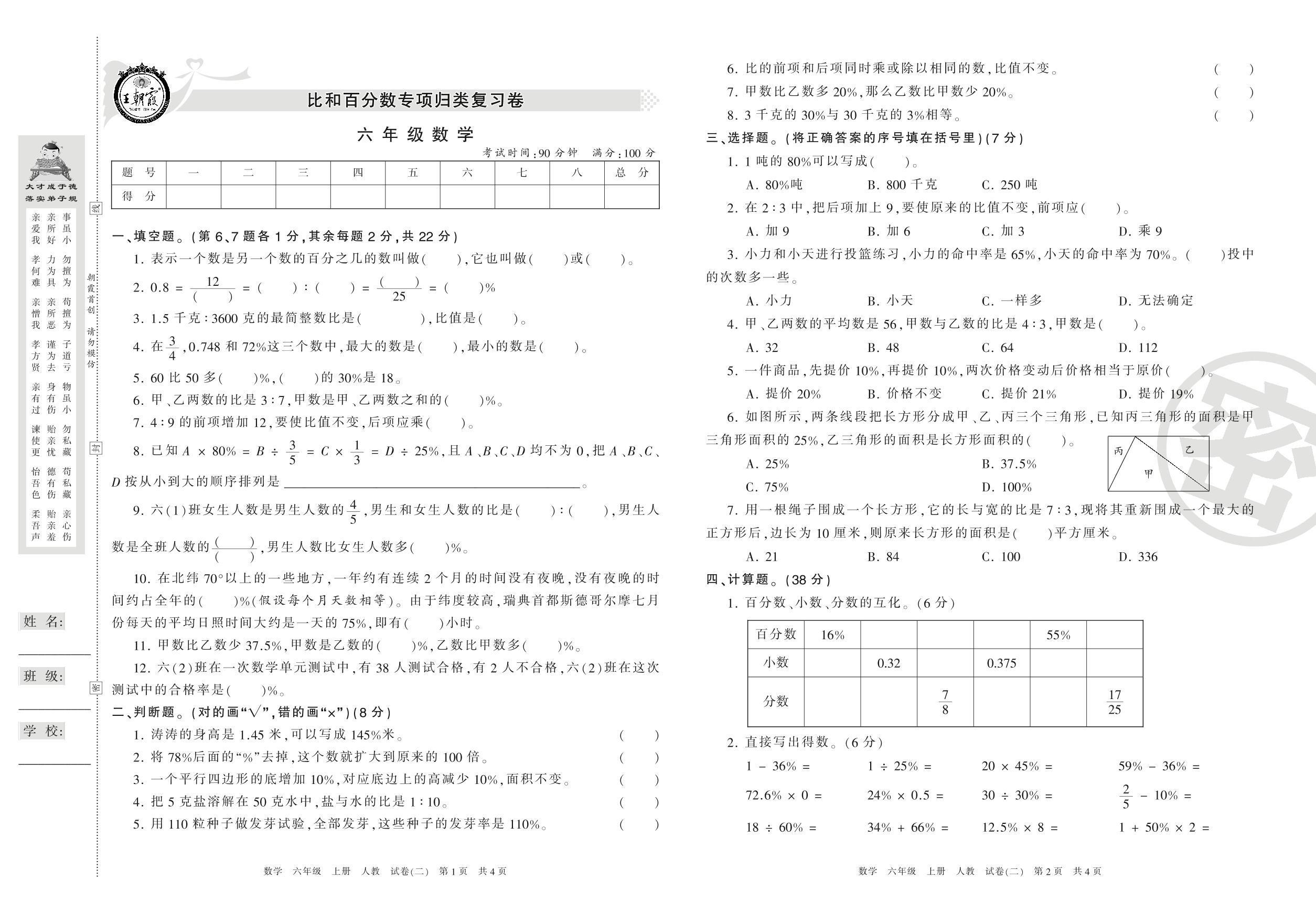 王朝霞期末专项卷六年级上册数学(人教版)_R210805105158【2】