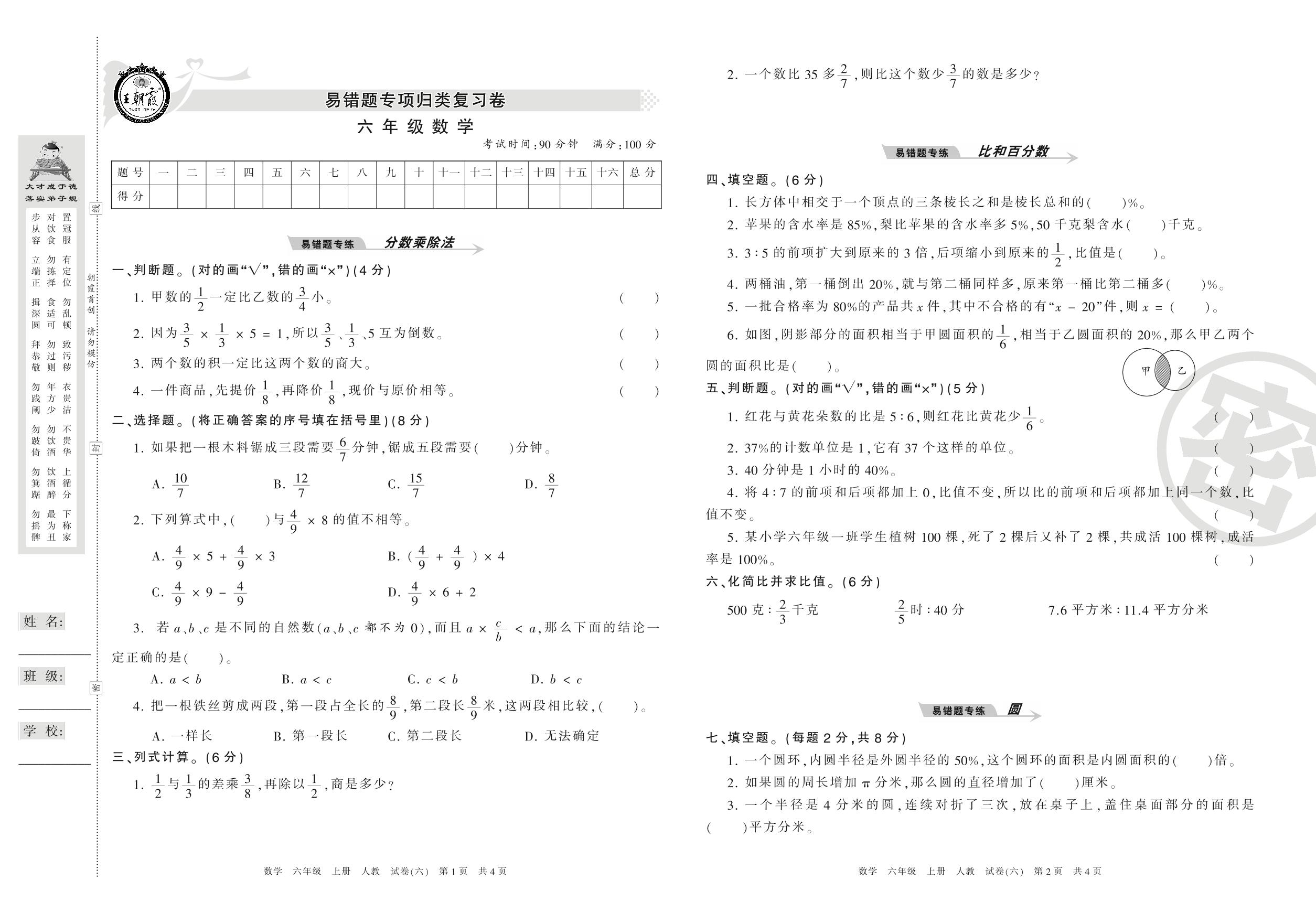 王朝霞期末专项卷六年级上册数学(人教版)_R210805105222【6】