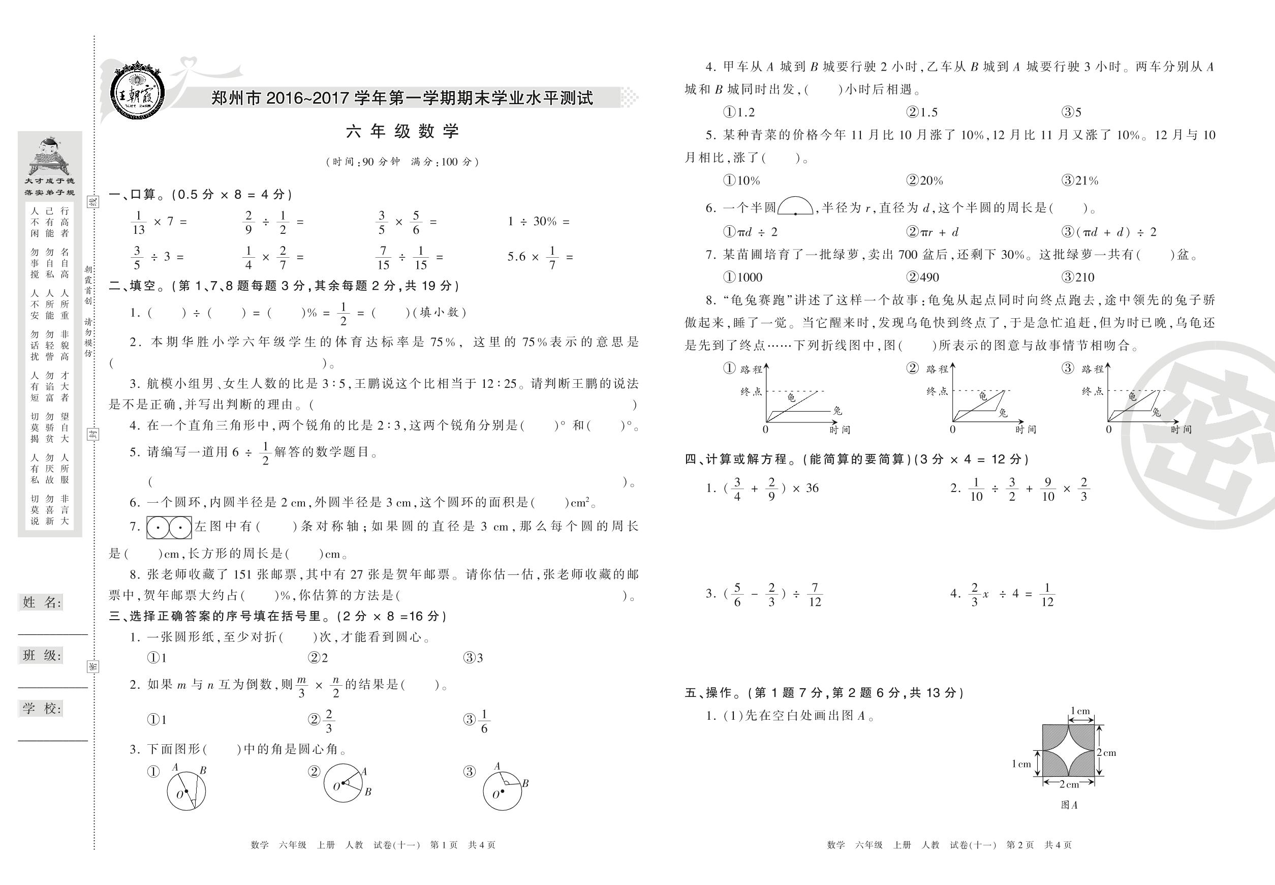 2016-2017学年第一学期郑州市六年级数学试卷(人教版)【11】
