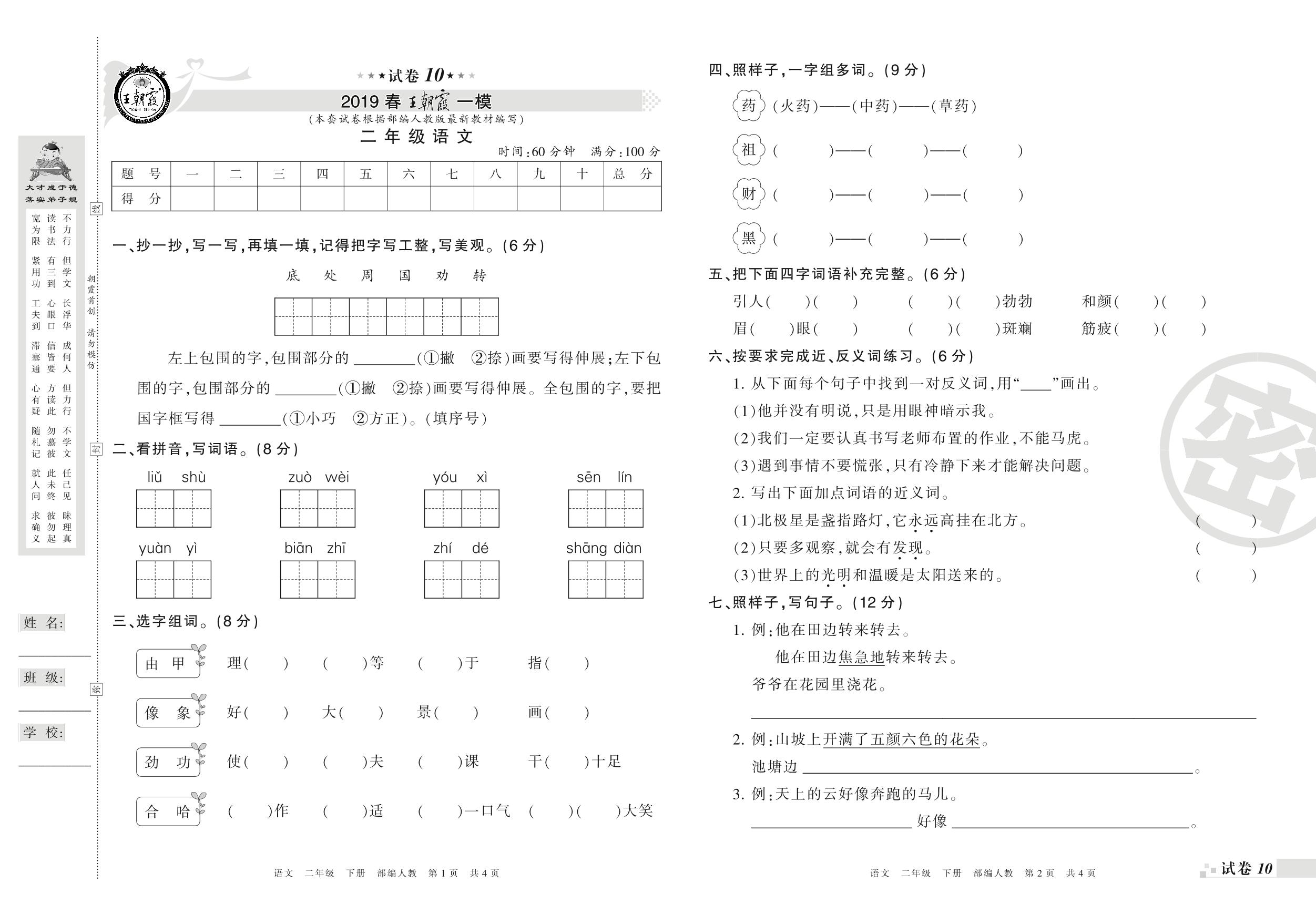 王朝霞期末模拟卷二年级下册语文(人教版)_R21080173007【10】