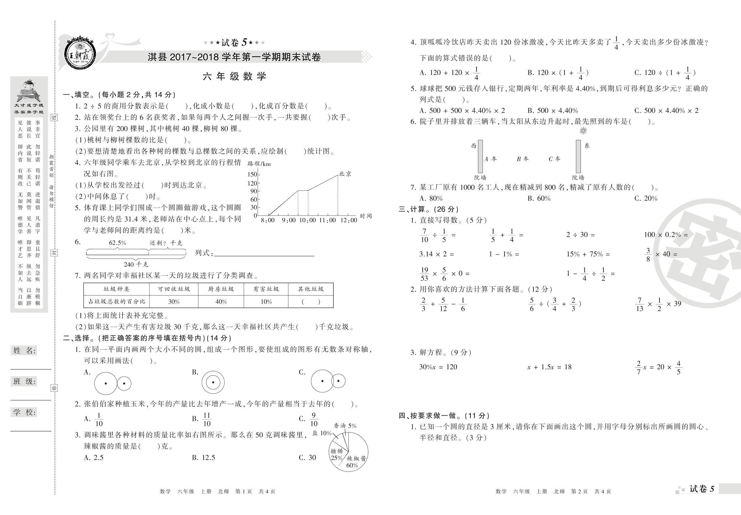 2017-2018学年第一学期鹤壁市淇县六年级数学试卷(北师版)【5】