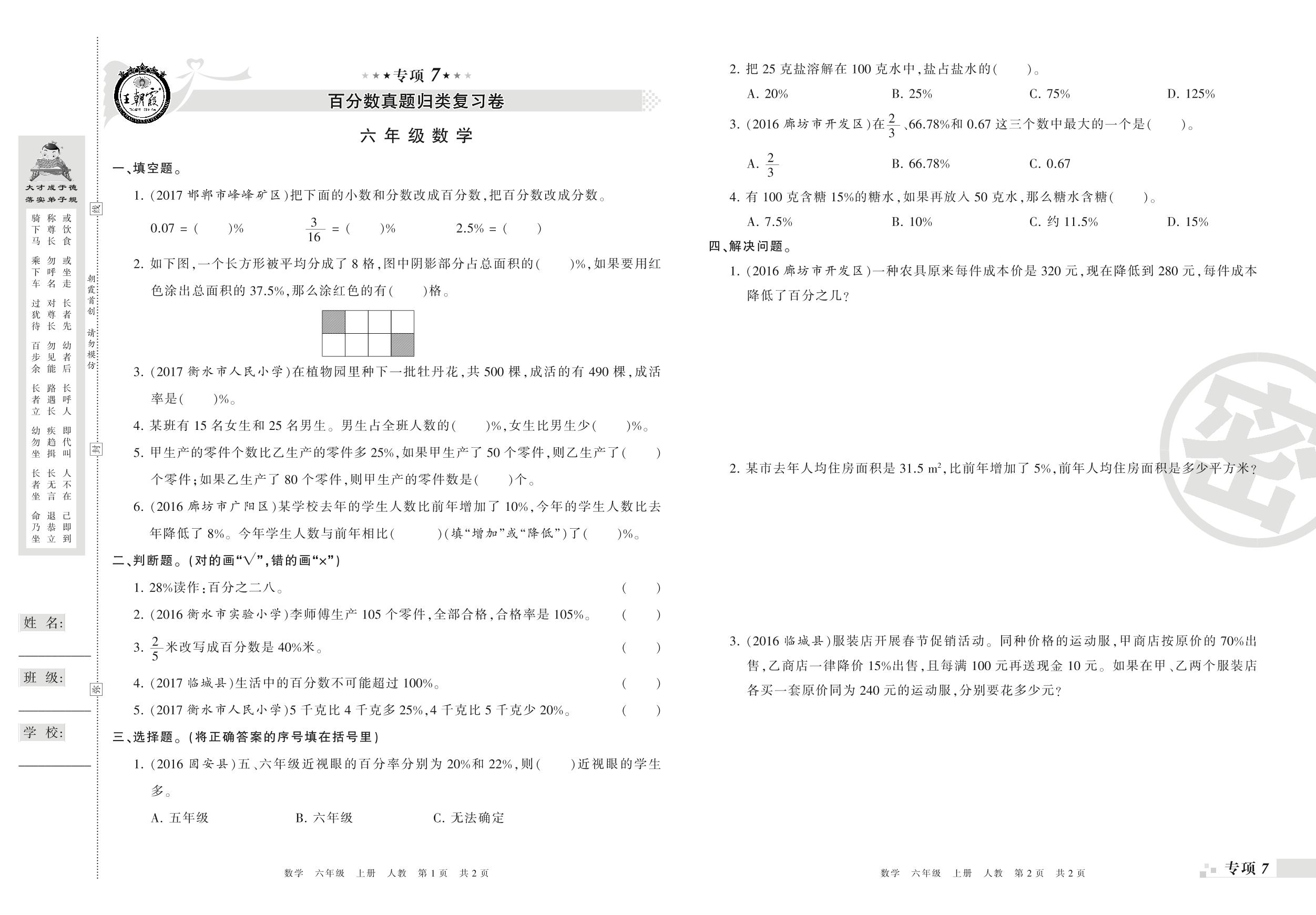王朝霞期末专项卷——百分数、图形与统计真题归类复习卷六年级上册数学(人教版)_R210805110123【0】