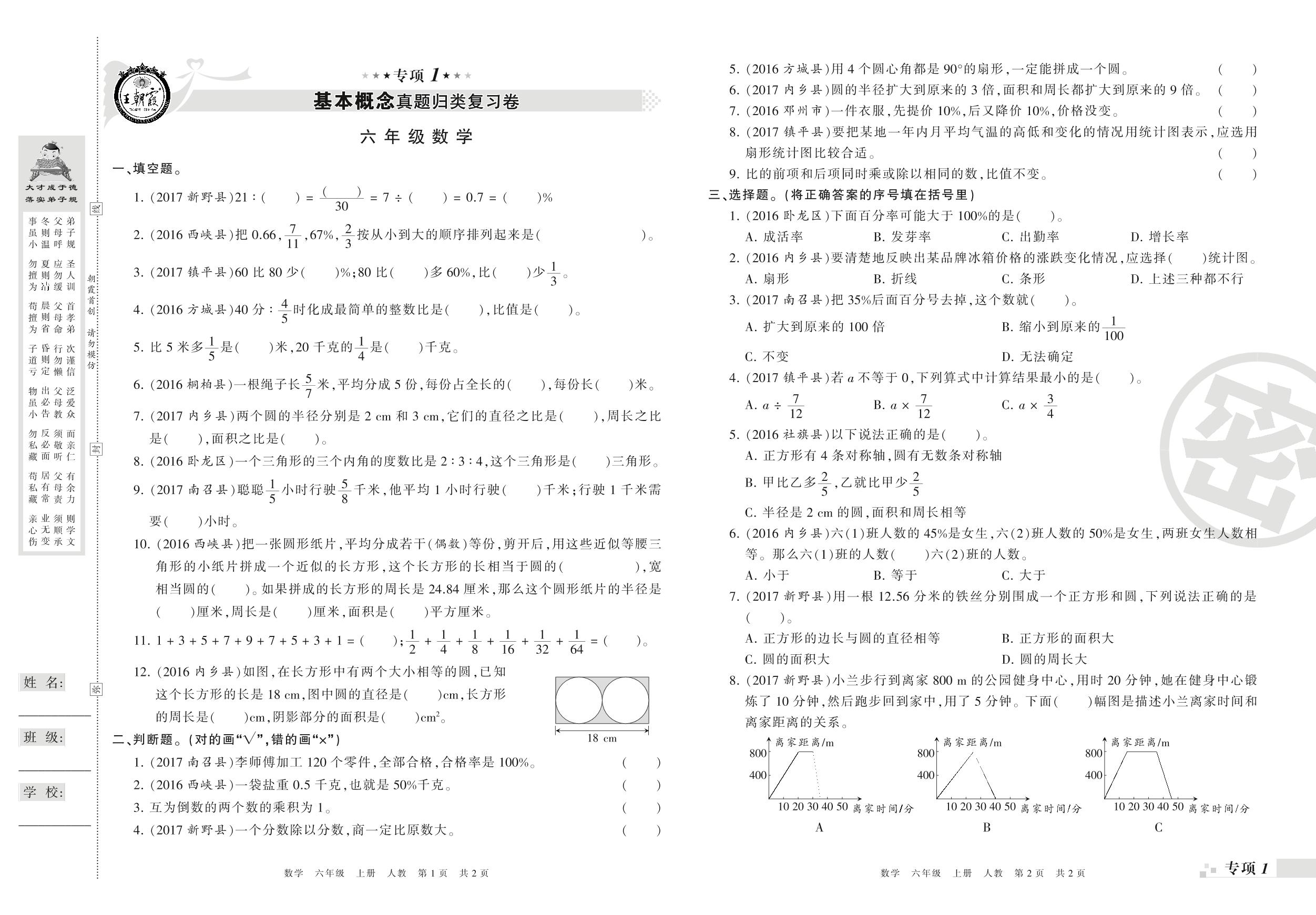 王朝霞期末专项卷——基本概念、计算真题归类复习卷六年级上册数学(人教版)_R210805110243【0】