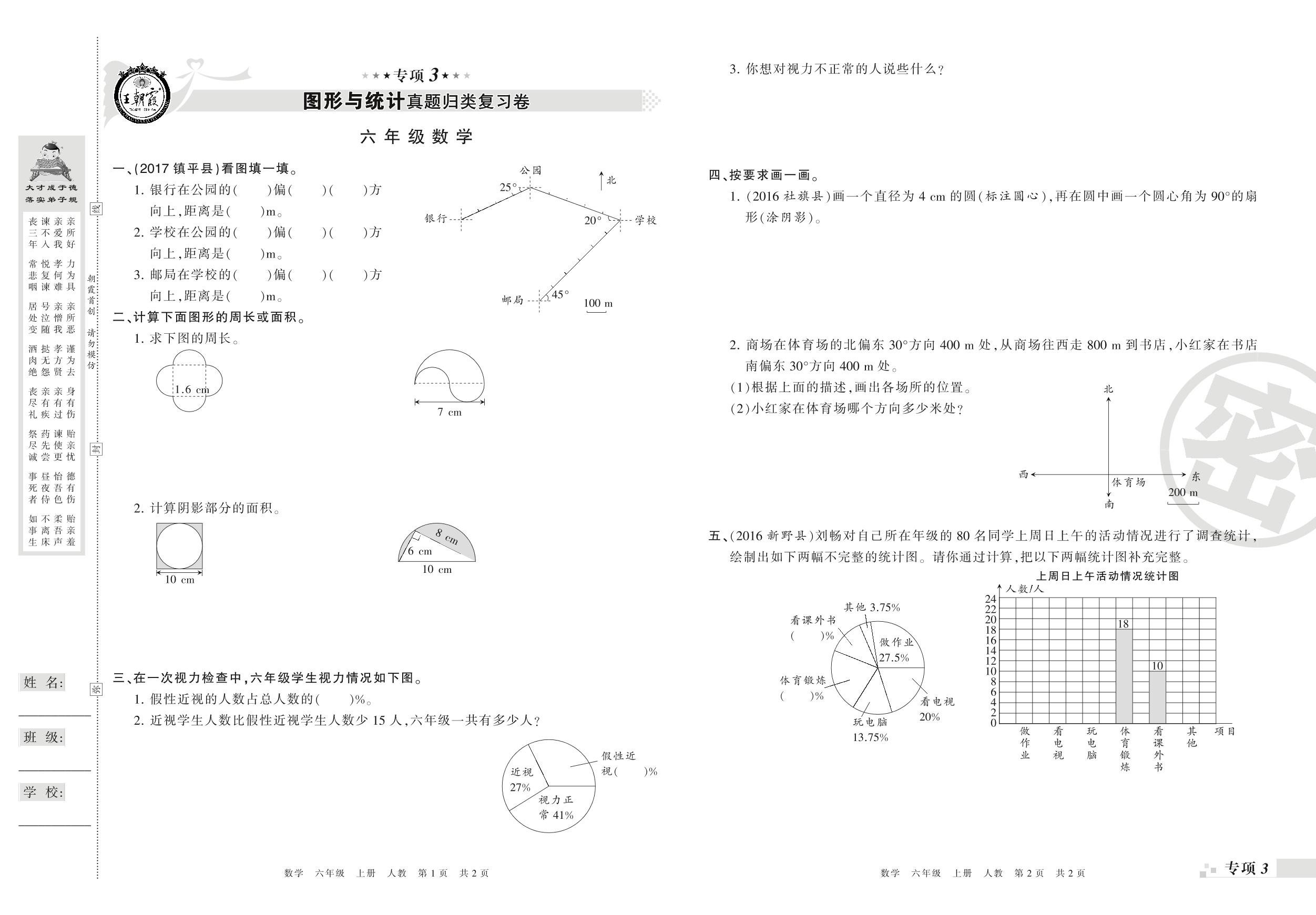 王朝霞期末专项卷——图形与统计、解决问题真题归类复习卷六年级上册数学(人教版)_R210805110245【0】