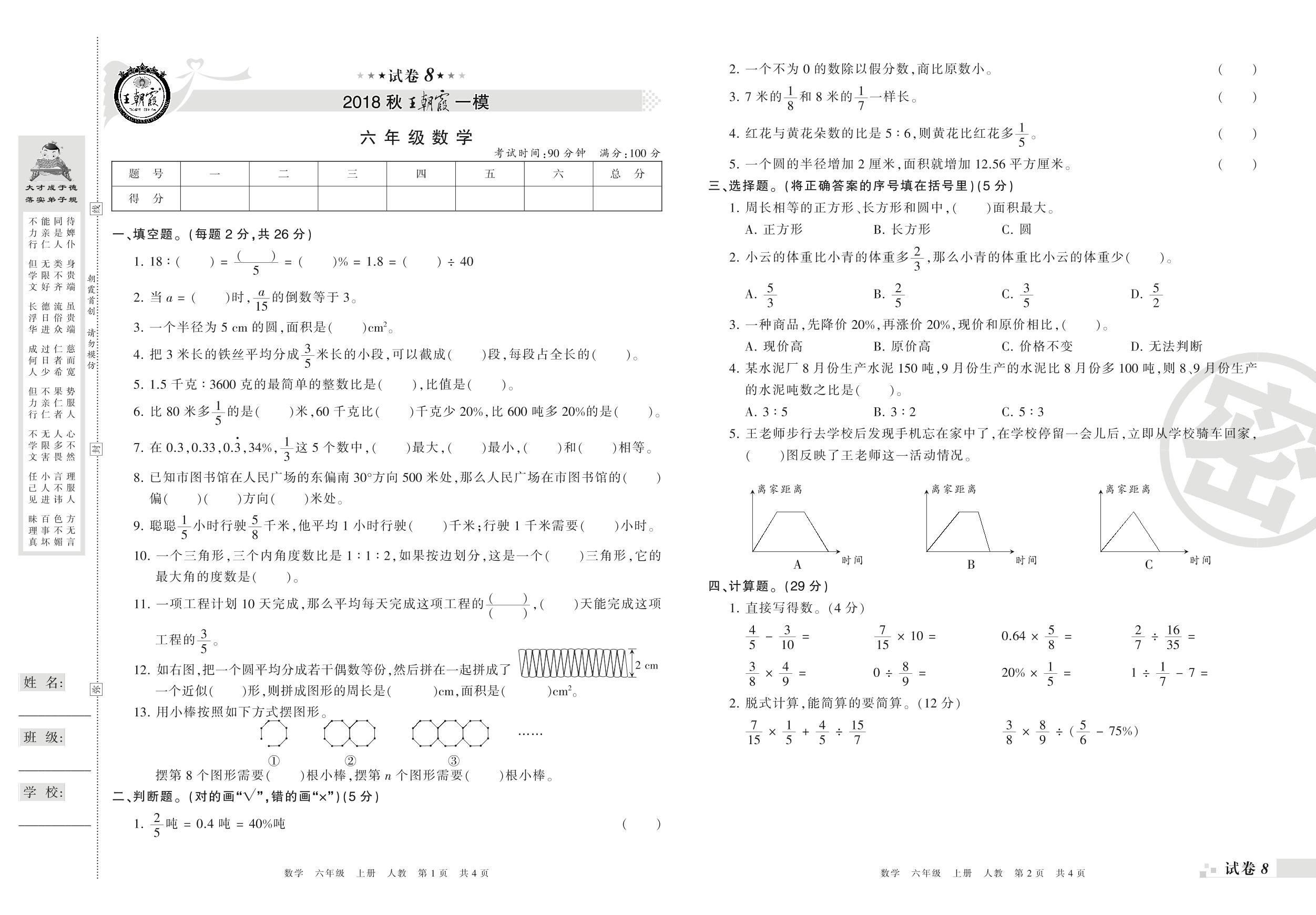 王朝霞期末模拟卷六年级上册数学(人教版)_R210805110303【8】