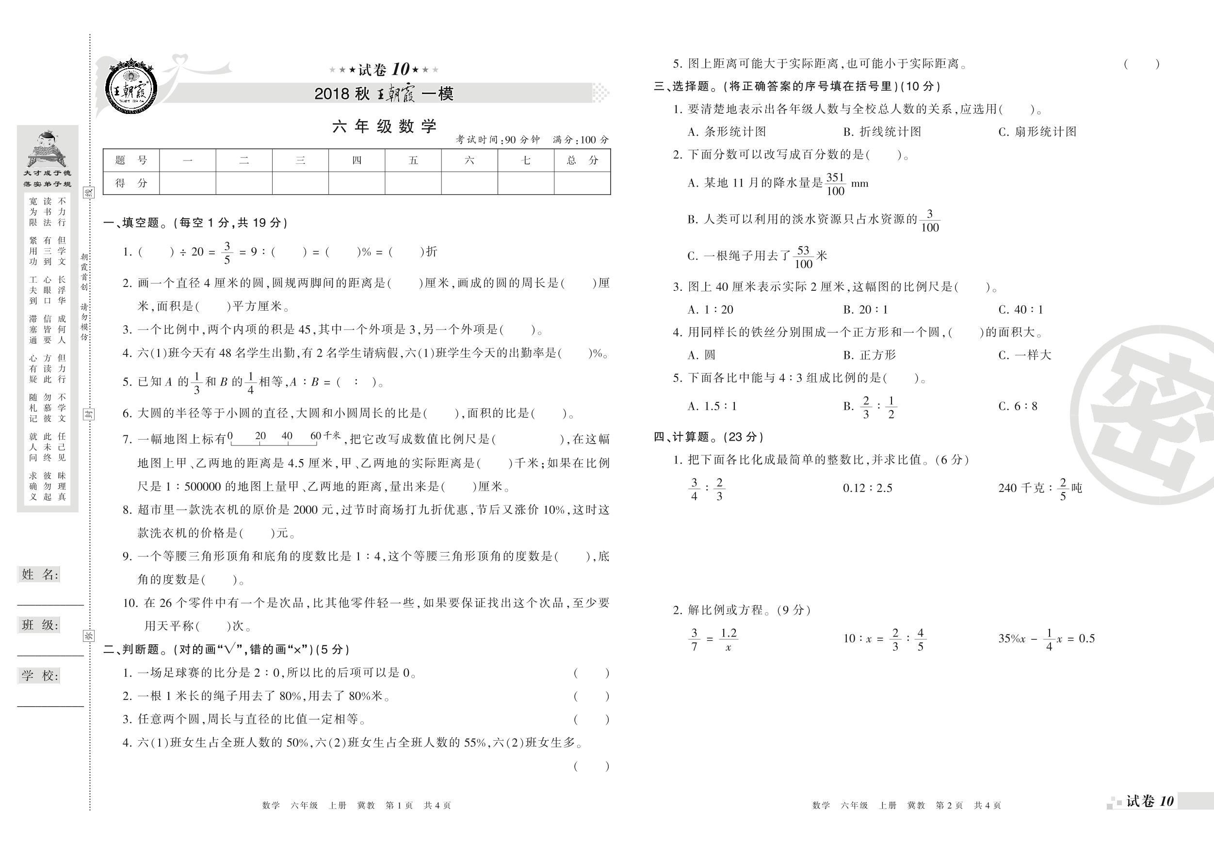 王朝霞期末模拟卷六年级上册数学(冀教版)_R210805110411【10】