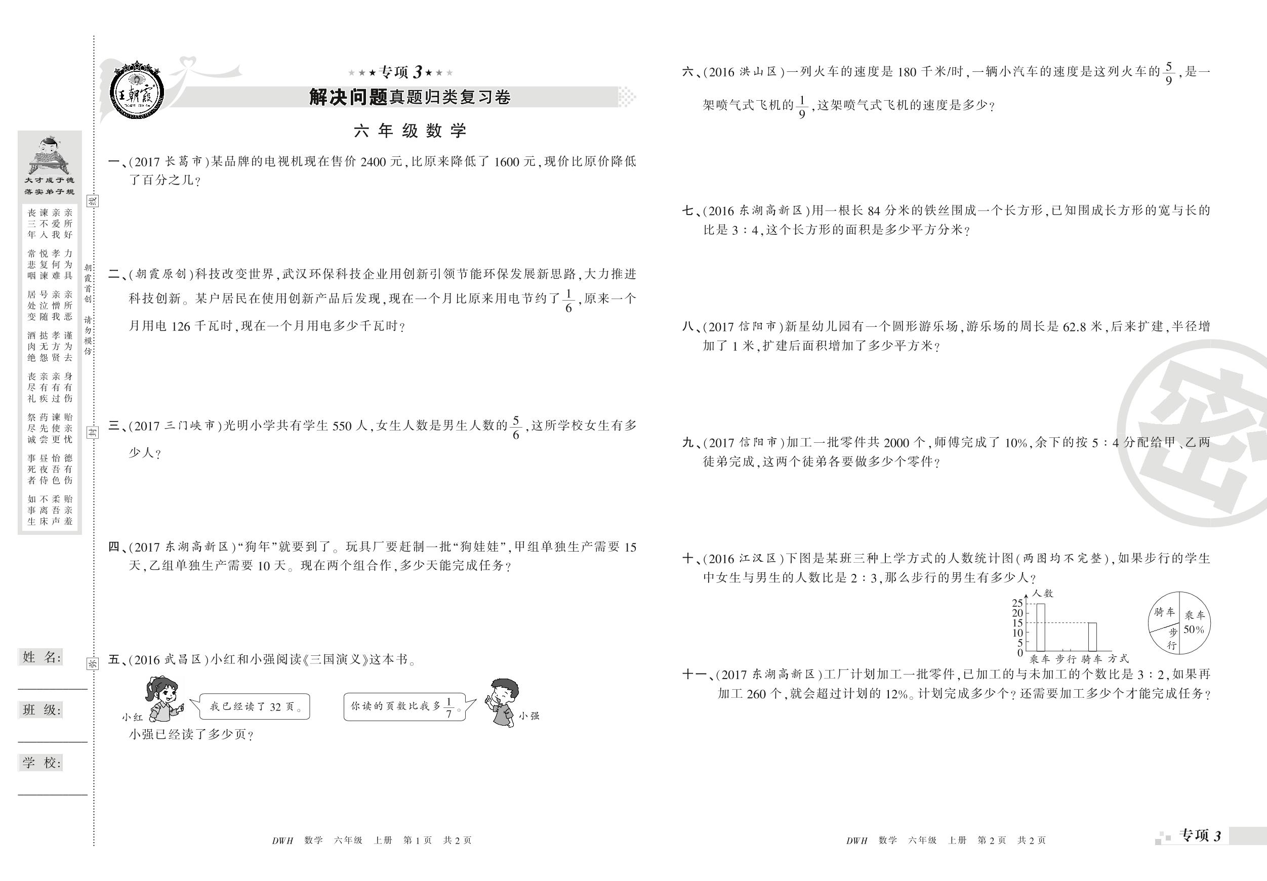 王朝霞期末专项卷——解决问题、易错题真题归类复习卷六年级上册数学(人教版)_R210805110438【0】