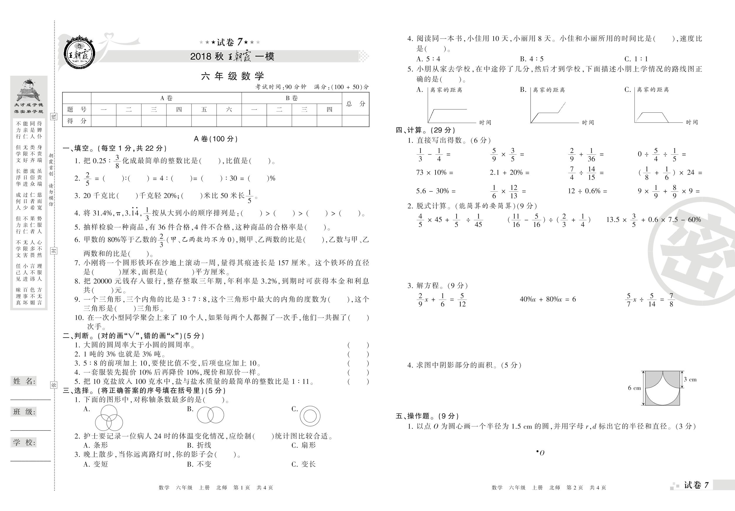 王朝霞期末模拟卷六年级上册数学(北师版)_R210805110535【7】