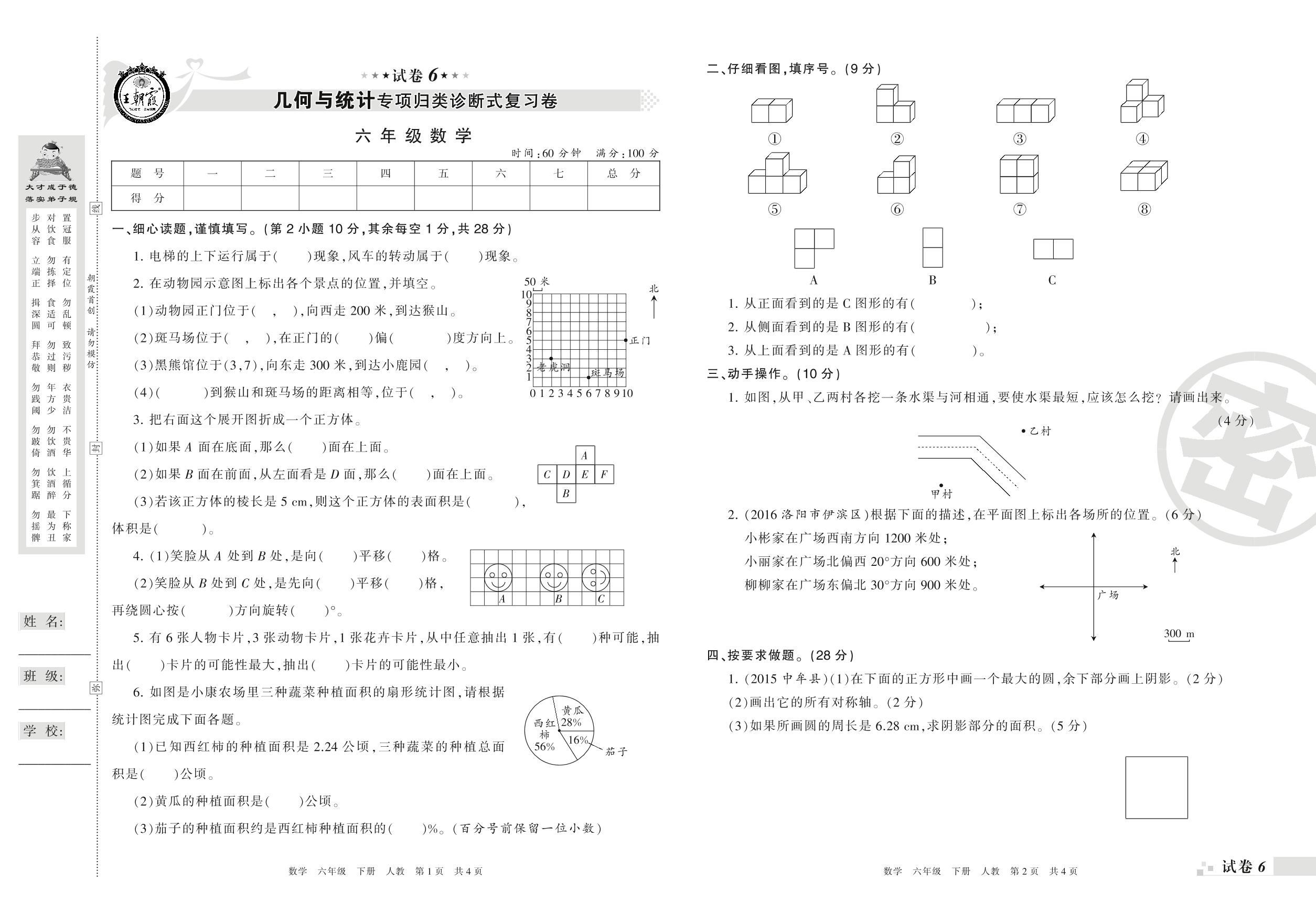 王朝霞期末专项卷——几何与统计专项归类诊断式复习卷六年级下册数学(人教版)【6】