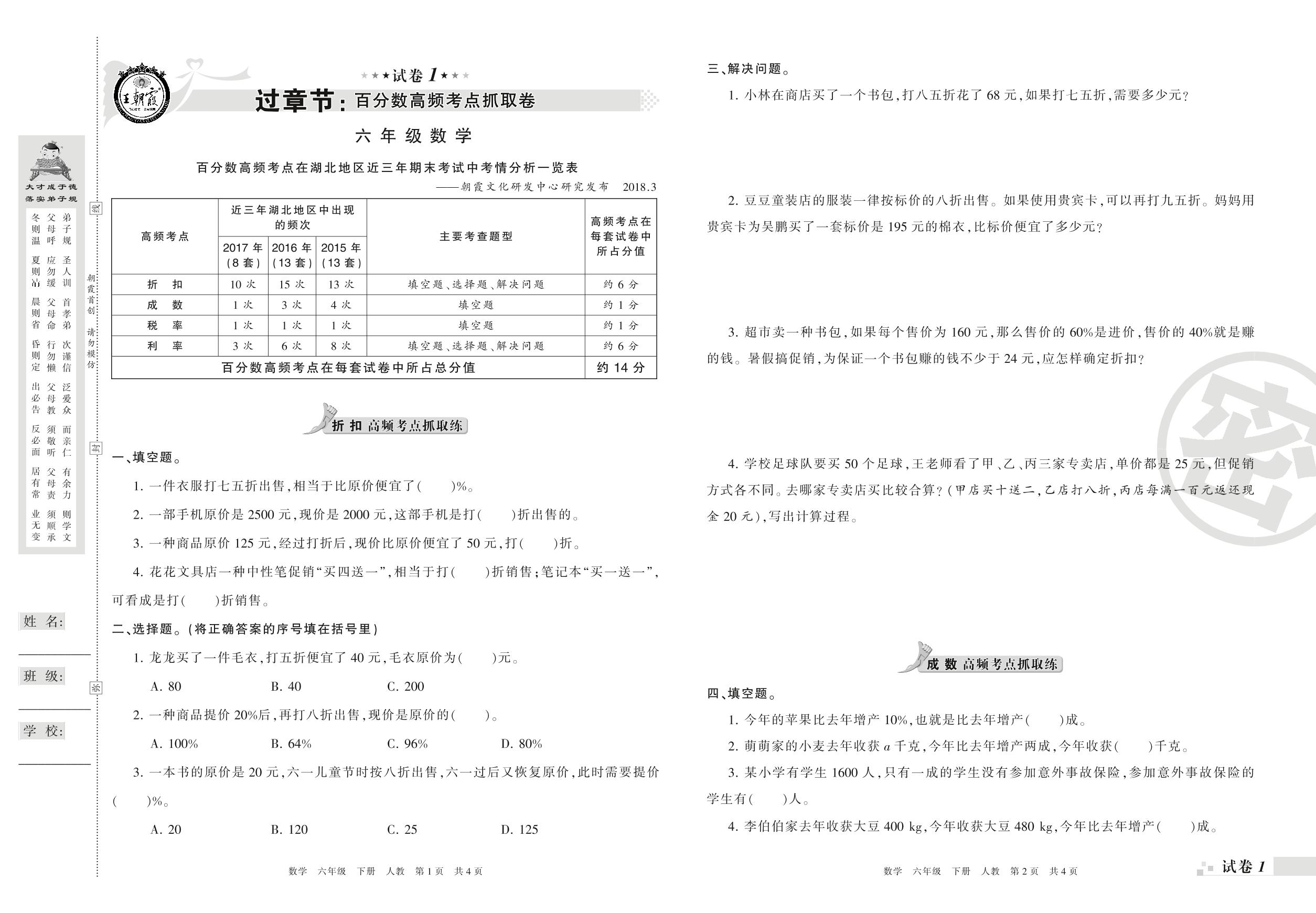 王朝霞期末过章节:百分数高频考点抓取卷六年级下册数学(人教版)_R220125135922070【1】