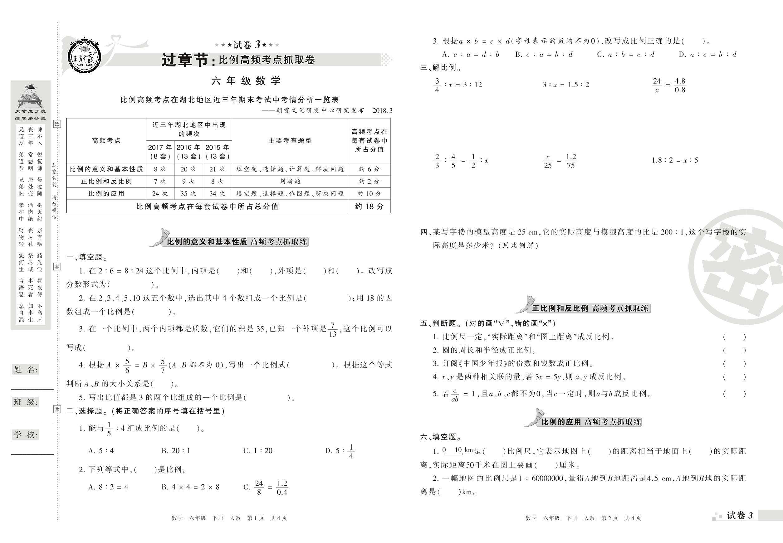 王朝霞期末过章节:比例高频考点抓取卷六年级下册数学(人教版)_R220125135922848【3】