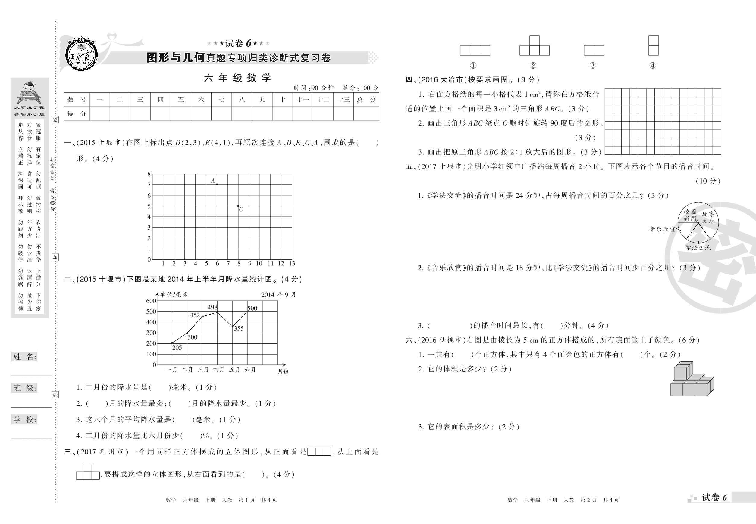 王朝霞期末专项卷——几何与统计专项归类诊断式复习卷六年级下册数学(人教版)_R220125135922065【6】
