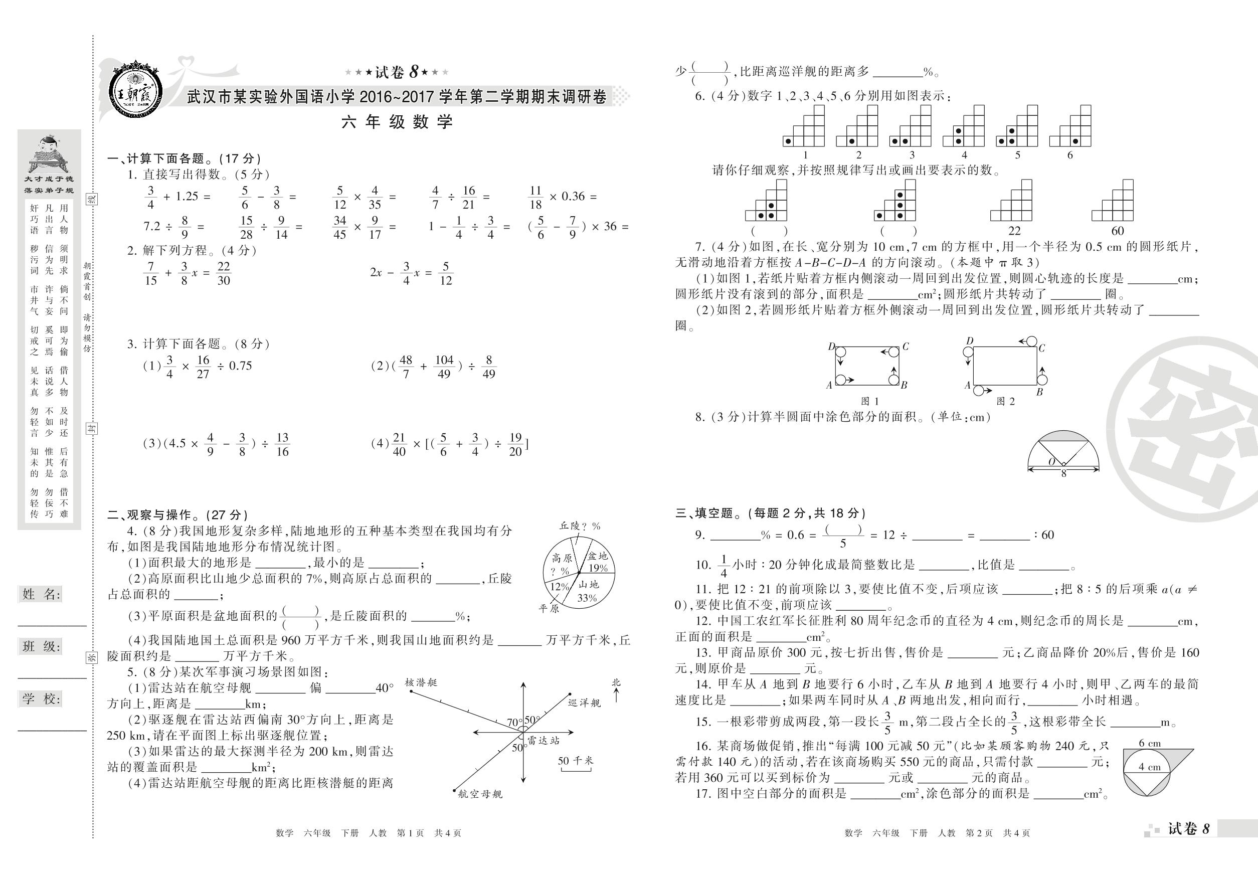 2016-2017学年第二学期武汉市六年级数学试卷(人教版)【8】