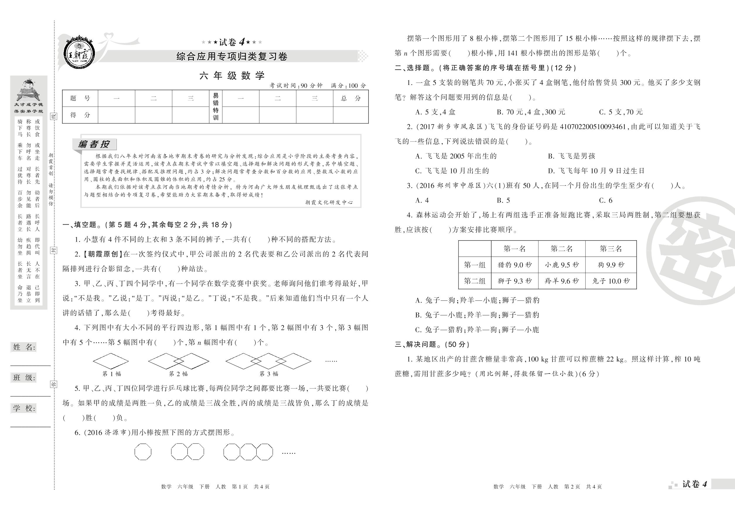 王朝霞期末专项卷——综合应用专项归类复习卷六年级下册数学(人教版)_R210805114936【4】