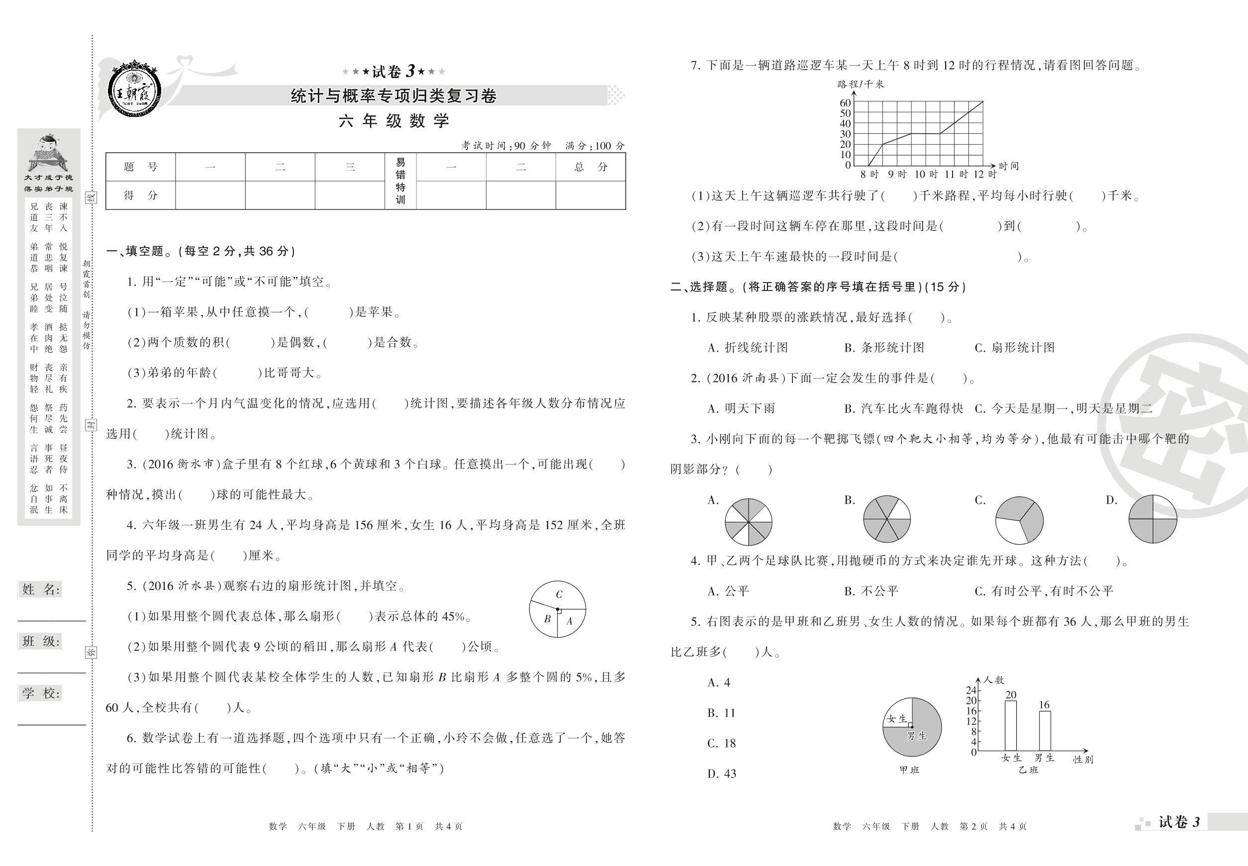 王朝霞期末专项卷——统计与概率专项归类复习卷六年级下册数学(人教版)_R210805115017【3】