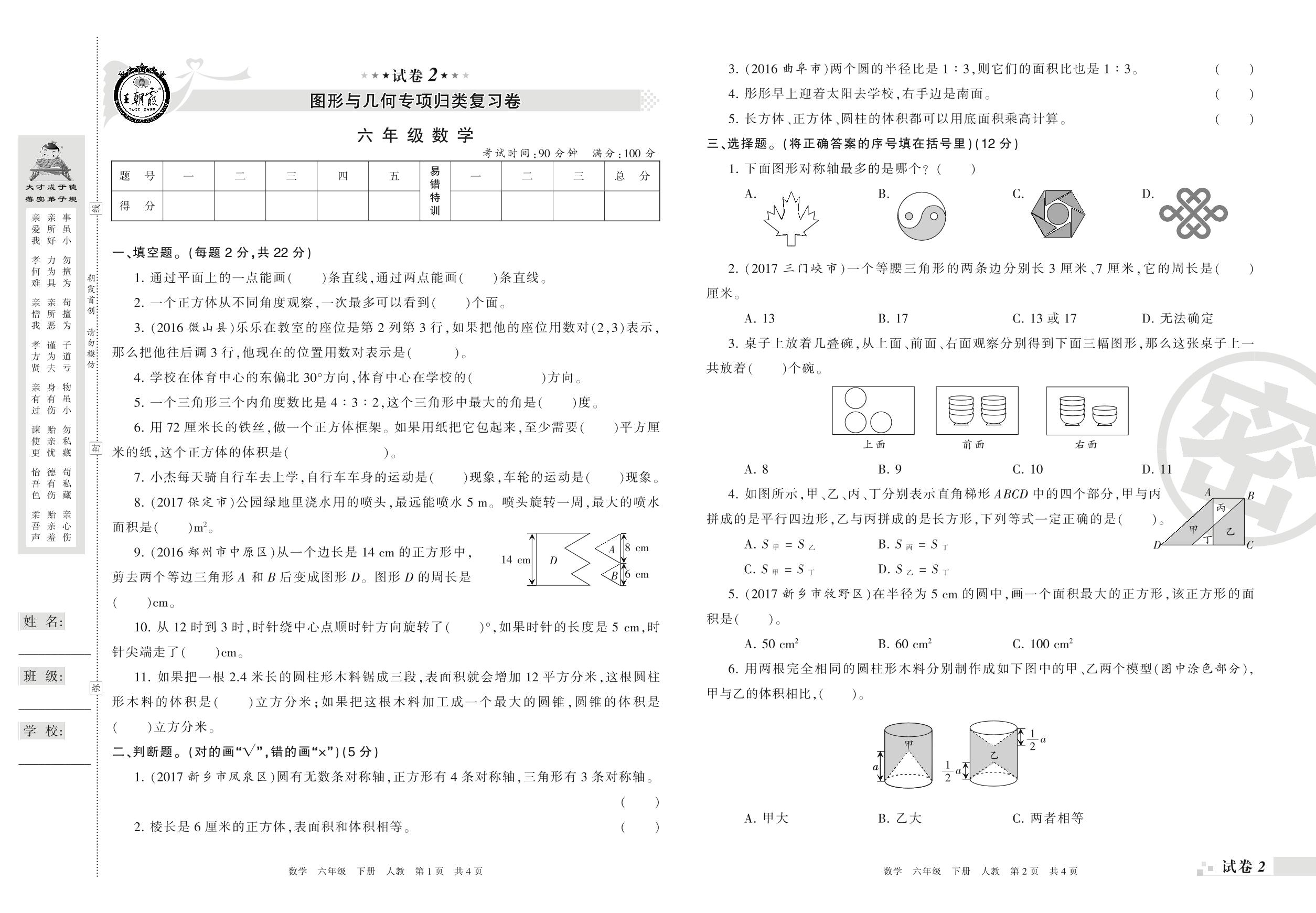 王朝霞期末专项卷——图形与几何专项归类复习卷六年级下册数学(人教版)_R210805115057【2】