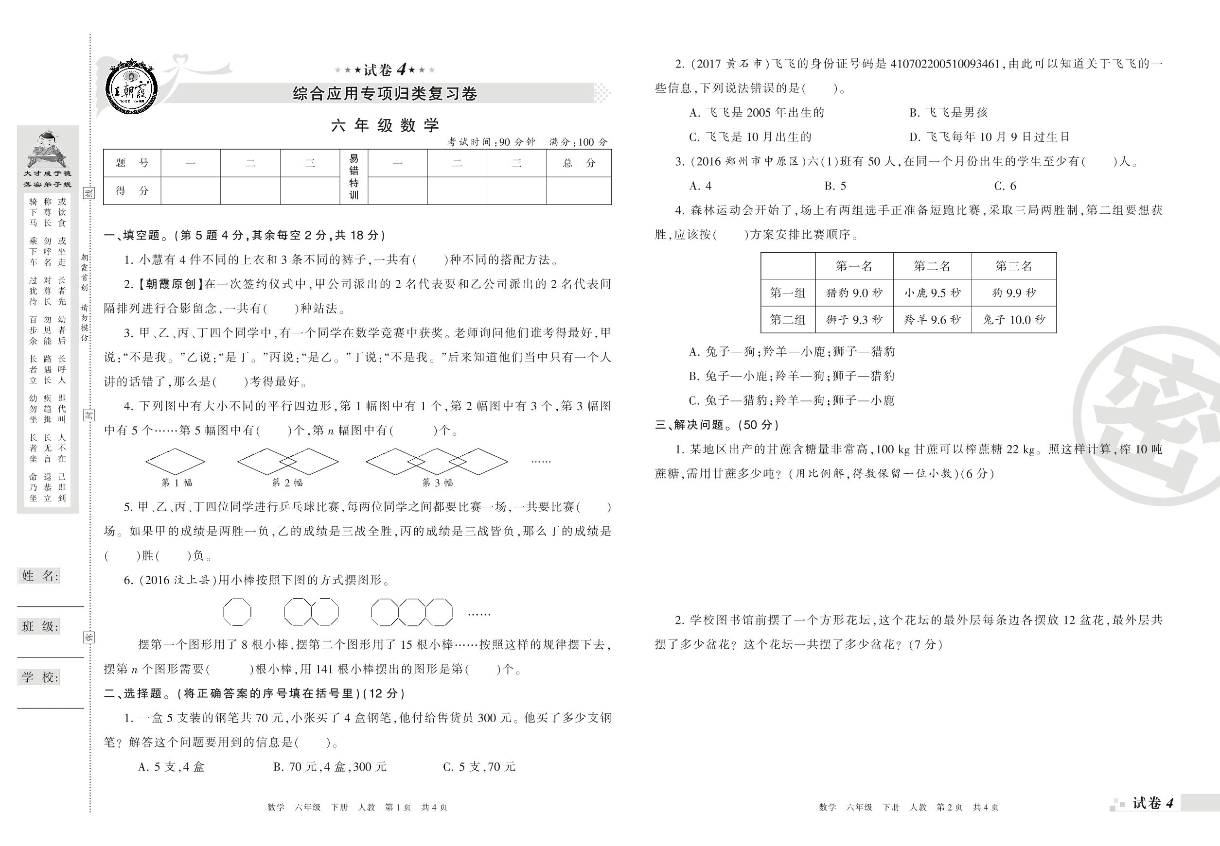 王朝霞期末专项卷——综合应用专项归类复习卷六年级下册数学(人教版)_R210805115111【4】
