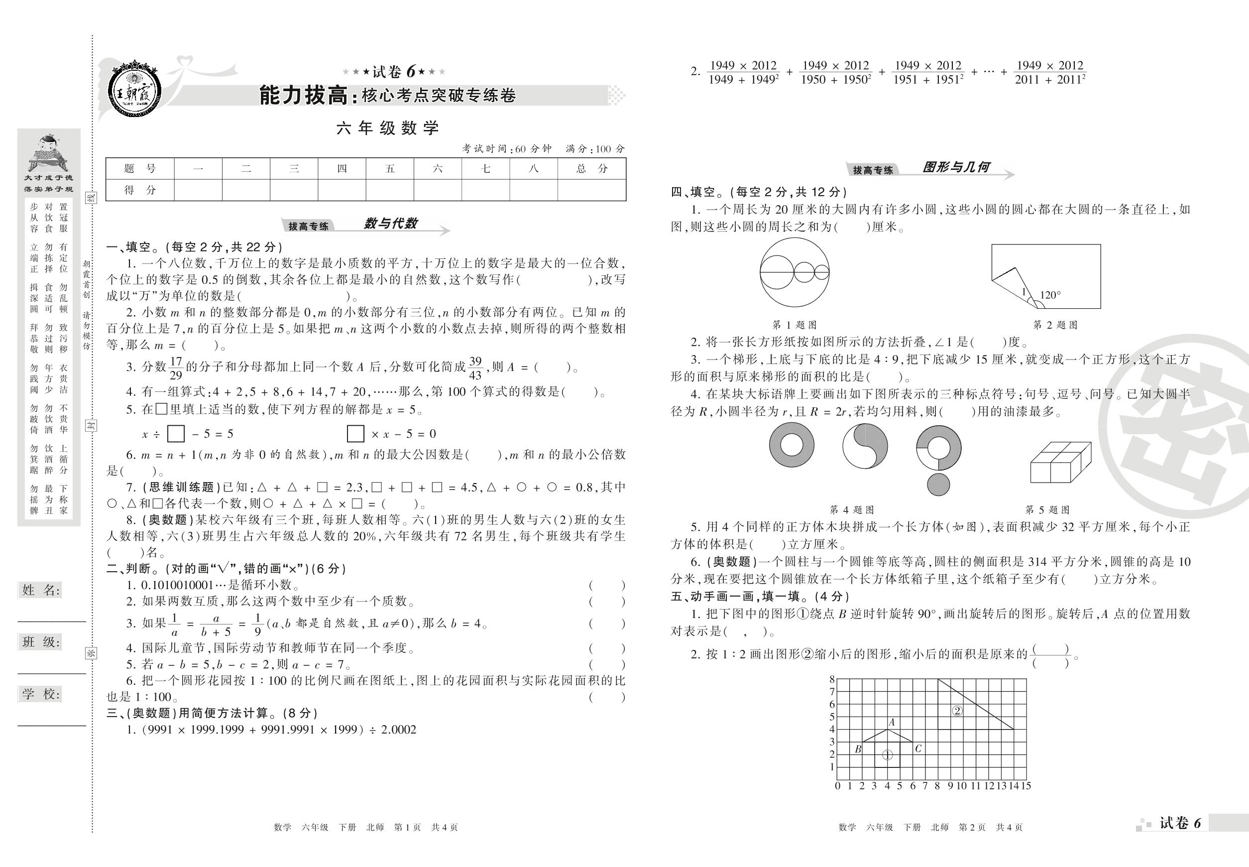 王朝霞期末专项卷——能力拔高:核心考点突破专练卷六年级下册数学(北师版)【6】