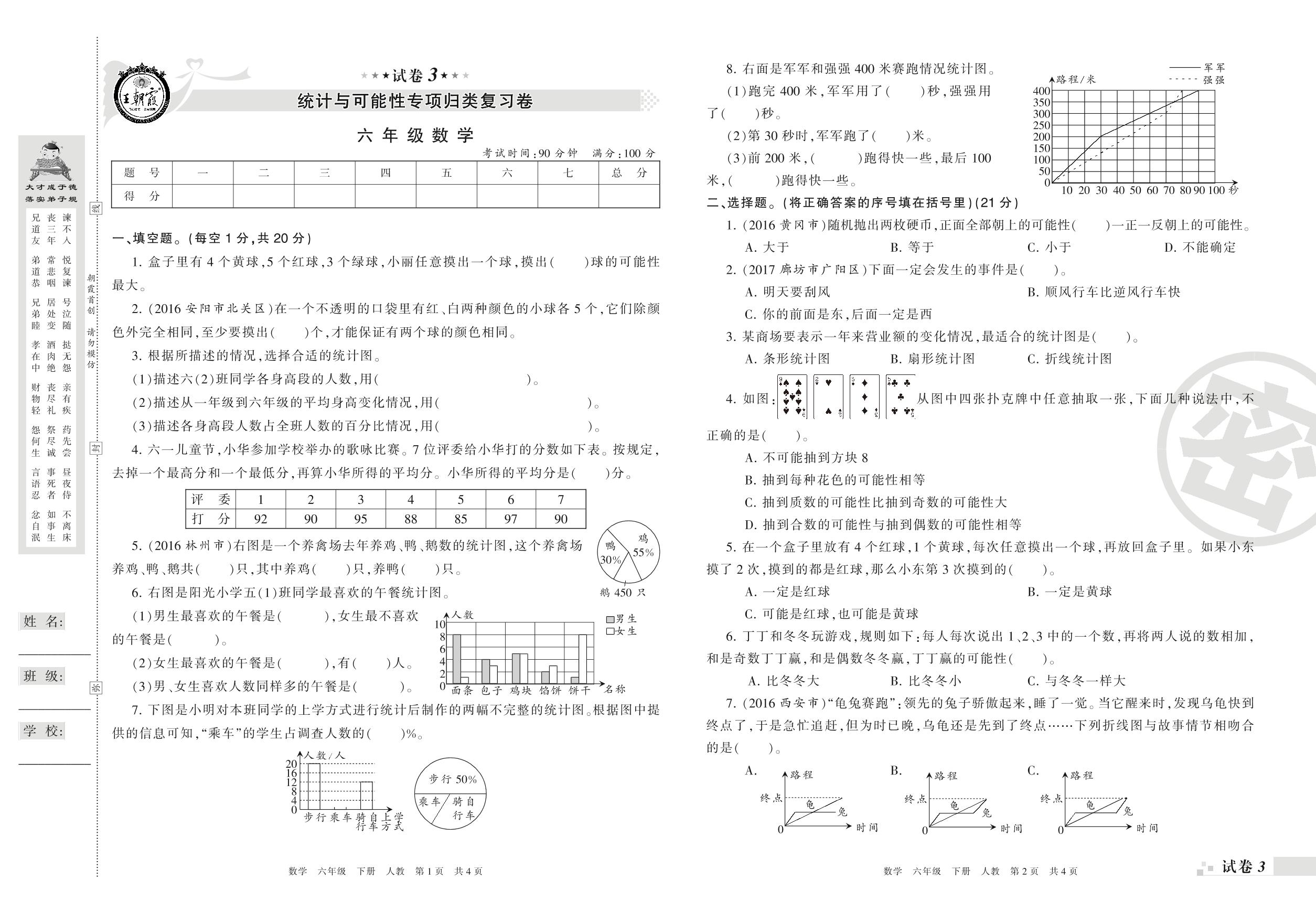 王朝霞期末专项卷——统计与可能性专项归类复习卷六年级下册数学(人教版)【3】