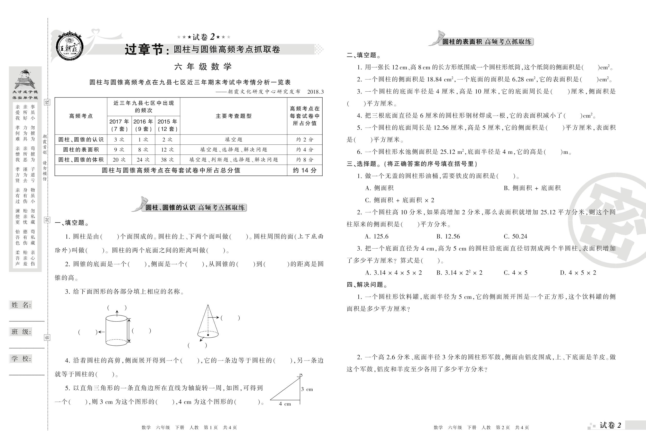 王朝霞期末过章节:圆柱与圆锥高频考点抓取卷六年级下册数学(人教版)_R210805133737【2】