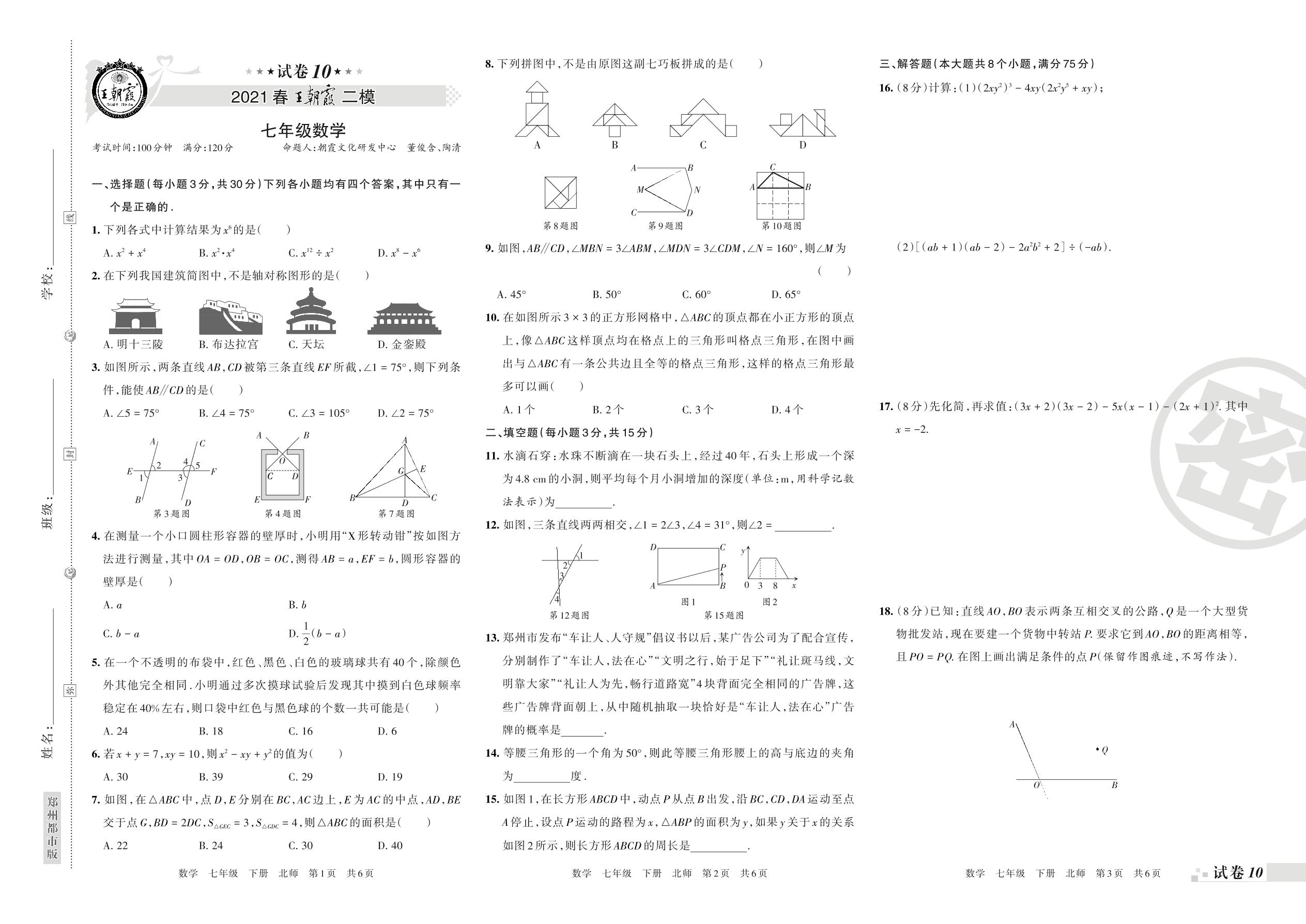 王朝霞期末模拟卷七年级下册数学(北师版)_R210805143801【10】