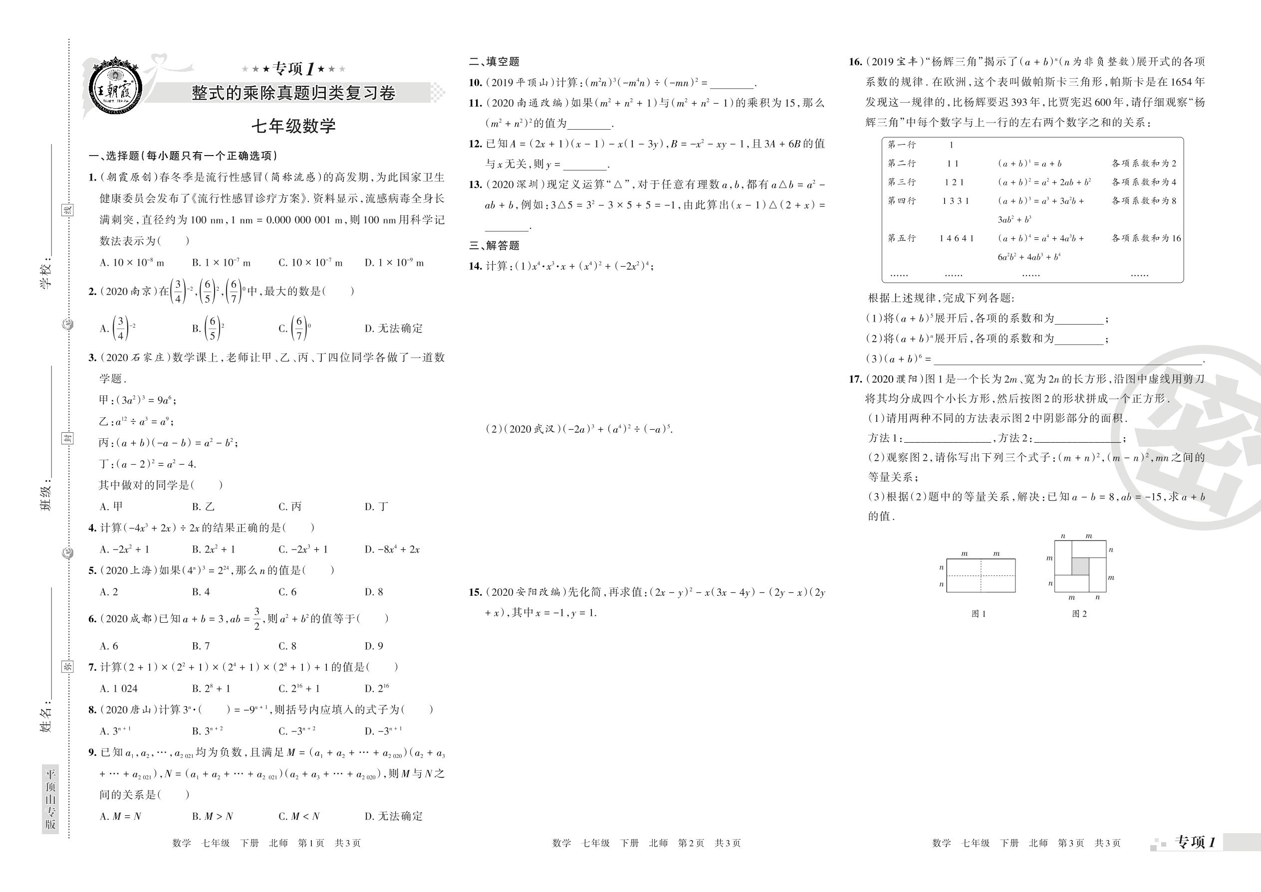 王朝霞期末专项卷——整式的乘除、相交线与平行线真题归类复习七年级下册数学(北师版)【0】