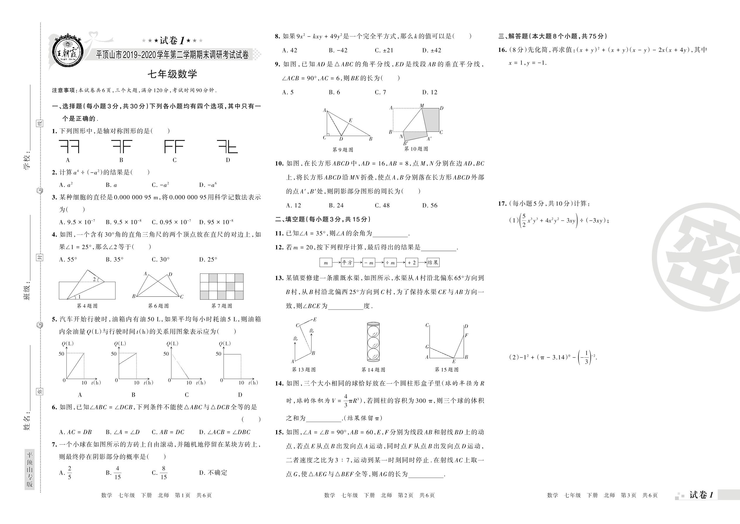 2019-2020学年第二学期平顶山市七年级数学试卷(北师版)【1】