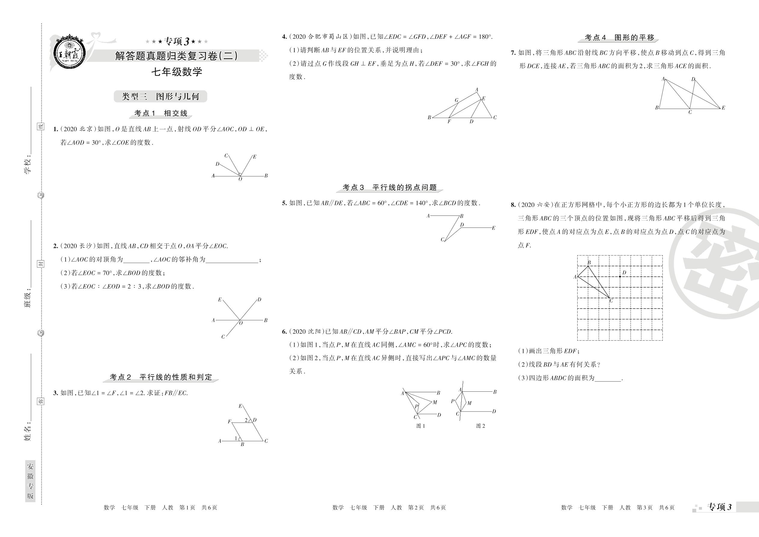 王朝霞期末专项卷——解答题真题归类复习(二)七年级下册数学(人教版)【0】