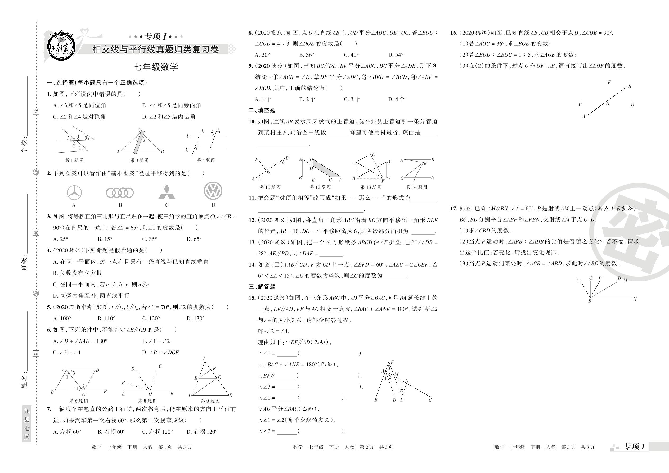 王朝霞期末专项卷——相交线与平行线真题归类复习七年级下册数学(人教版)【1】