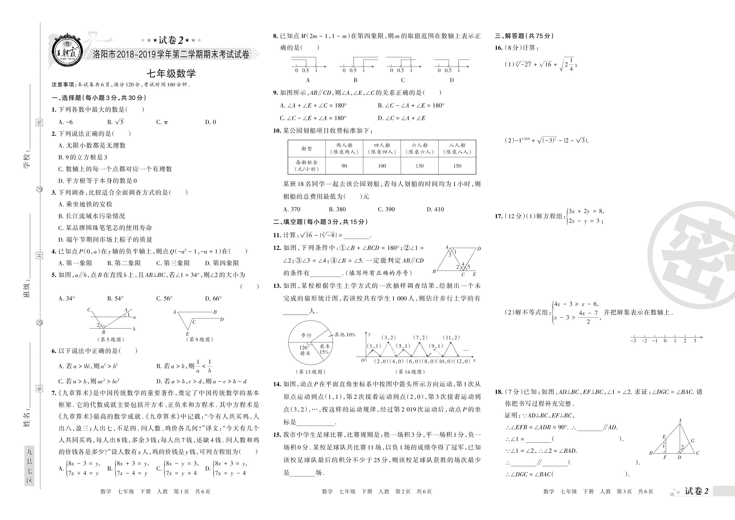 2018-2019学年第二学期洛阳市七年级数学试卷(人教版)【2】