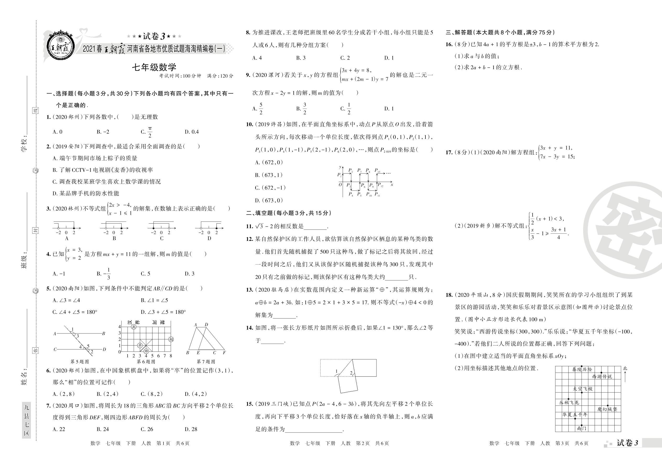 王朝霞海淘期末精编卷七年级下册数学(人教版)【3】