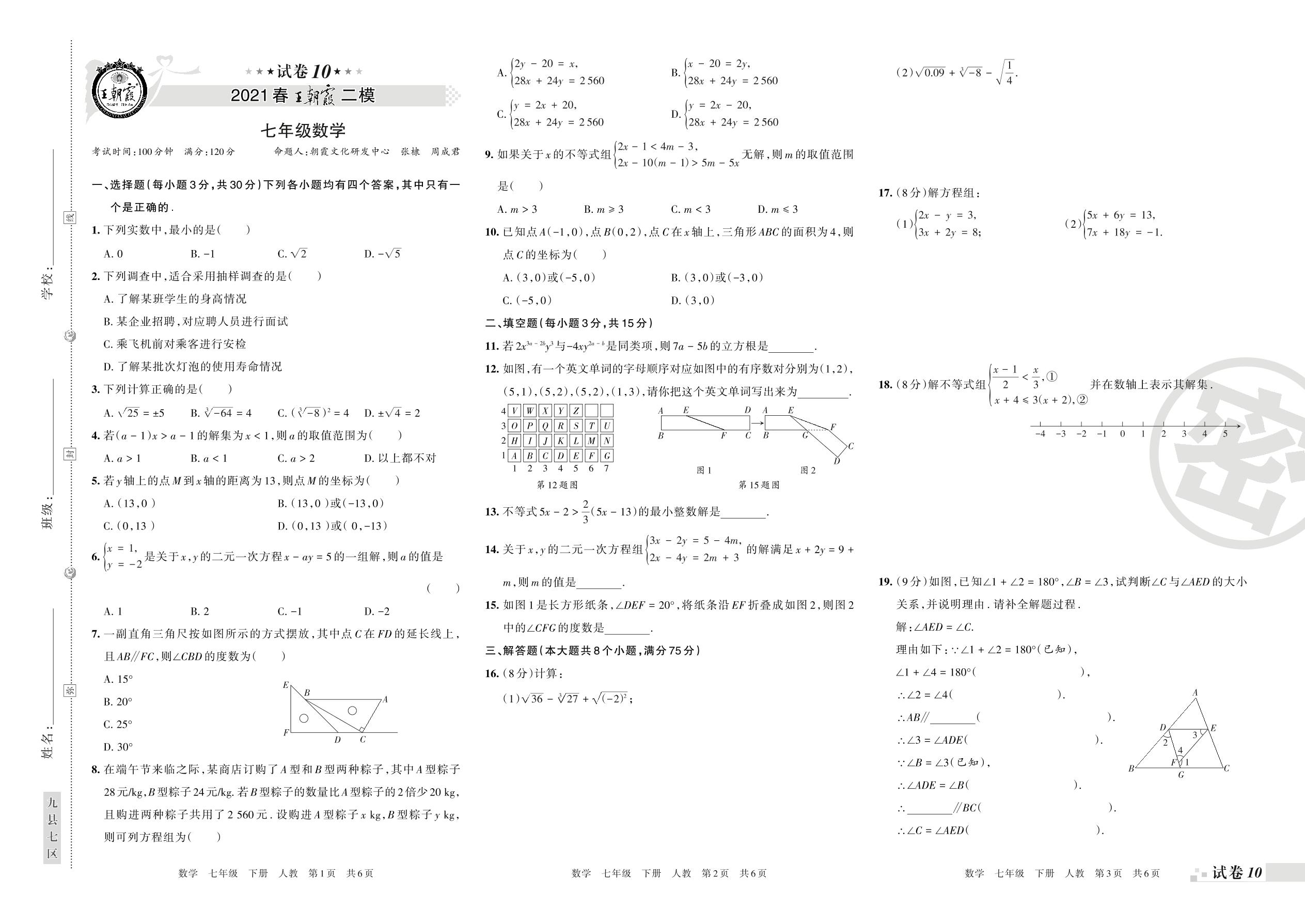 王朝霞期末模拟卷七年级下册数学(人教版)_R210805144454【10】