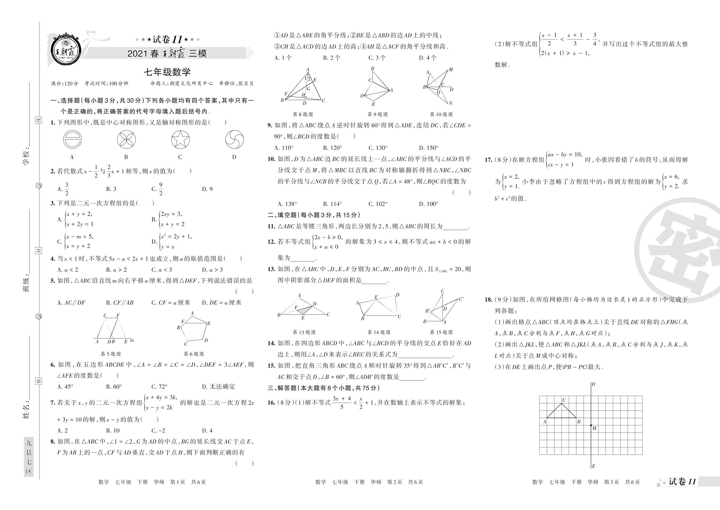 王朝霞期末模拟卷七年级下册数学(华师版)_R210805144621【11】