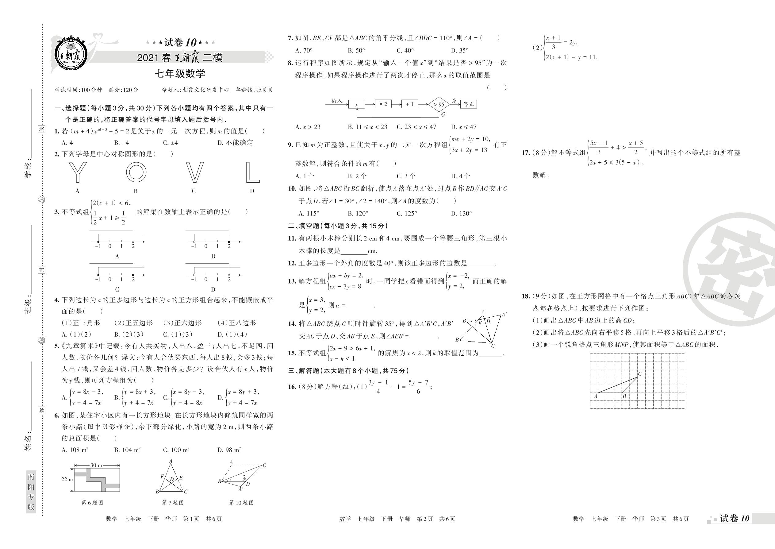 王朝霞期末模拟卷七年级下册数学(华师版)_R210805144726【10】