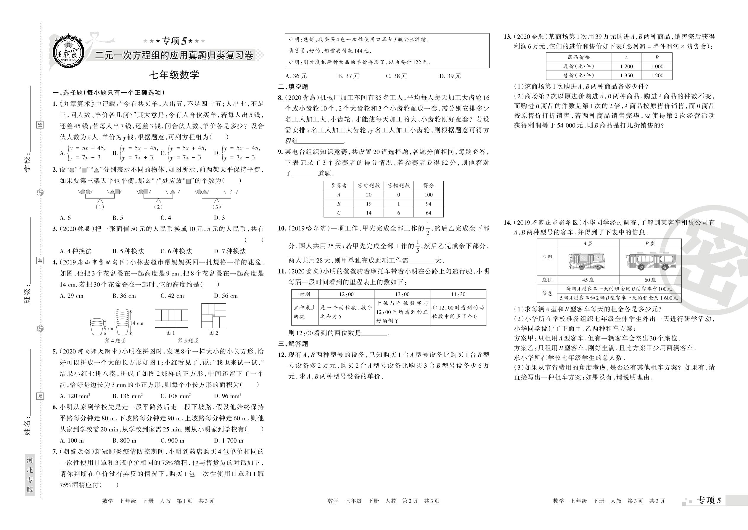 王朝霞期末专项卷——二元一次方程组的应用、不等式与不等式组的认识与解法真题归类复习七年级下册数学(人教版)【0】