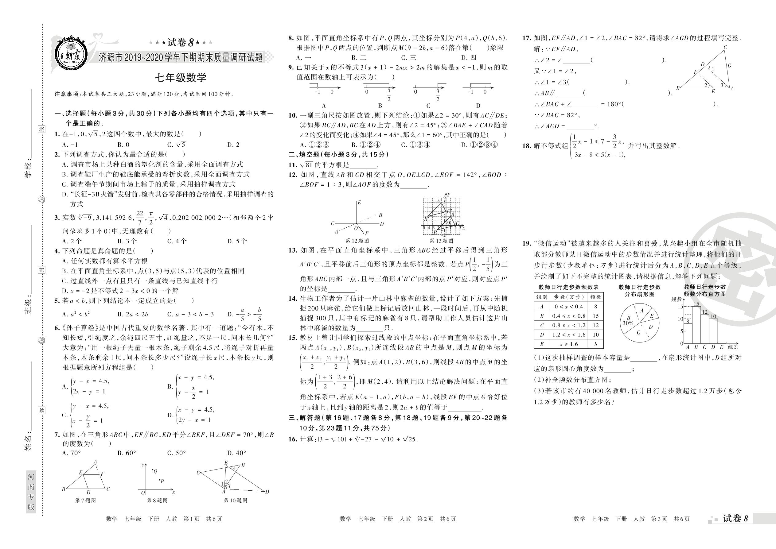 2019-2020学年第二学期济源市七年级数学试卷(人教版)【8】