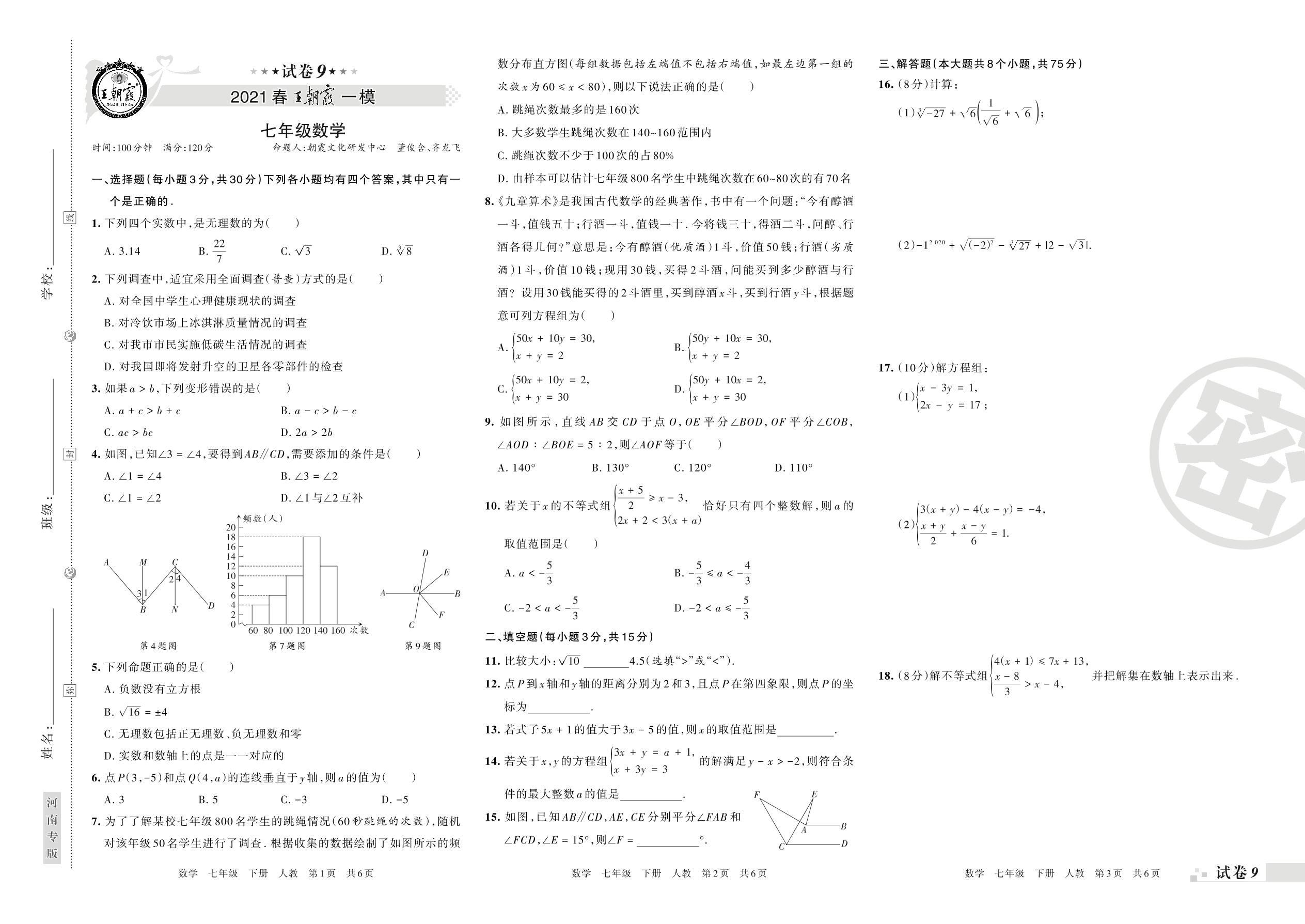 王朝霞期末模拟卷七年级下册数学(人教版)_R210805145037【9】