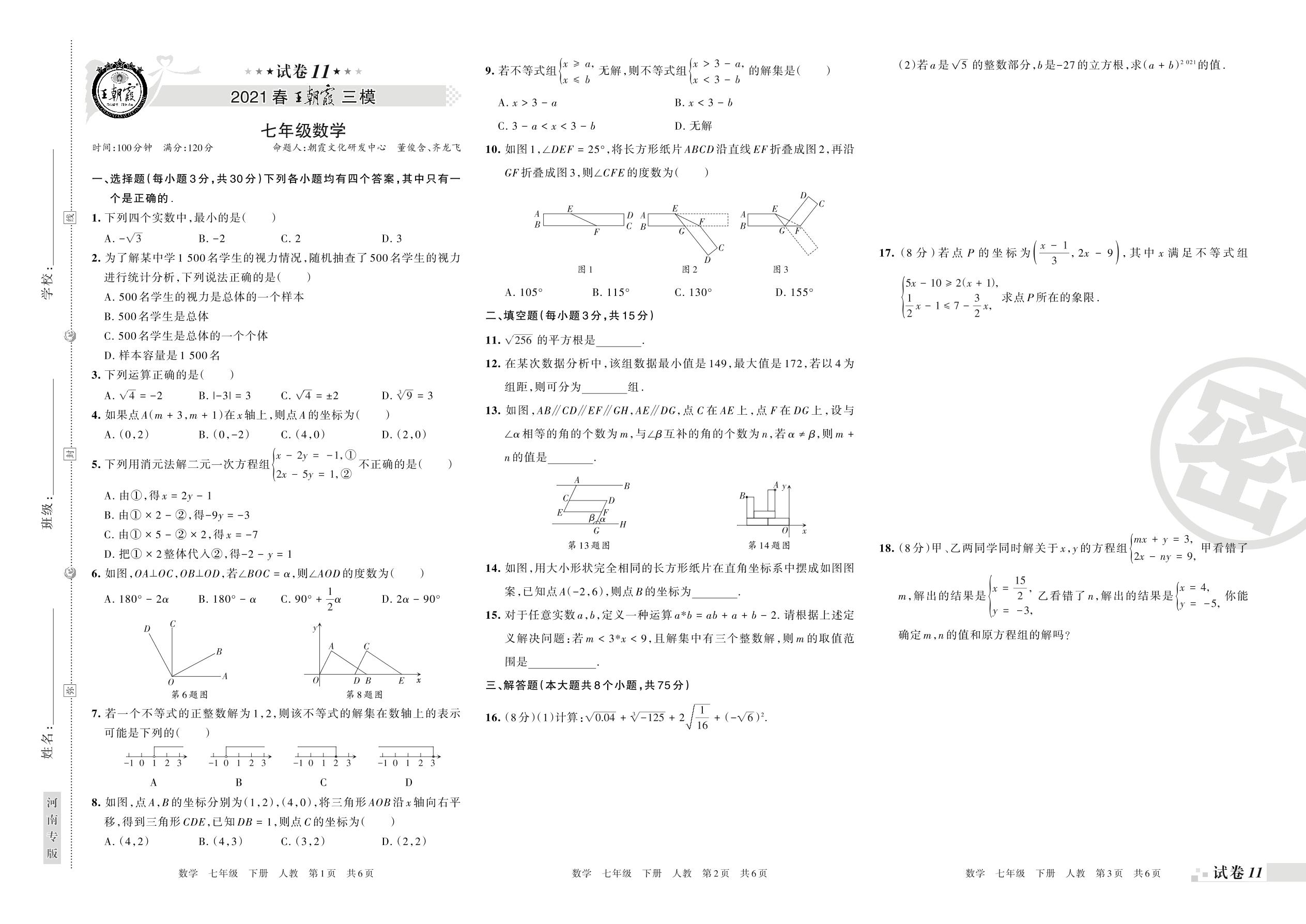 王朝霞期末模拟卷七年级下册数学(人教版)_R210805145105【11】