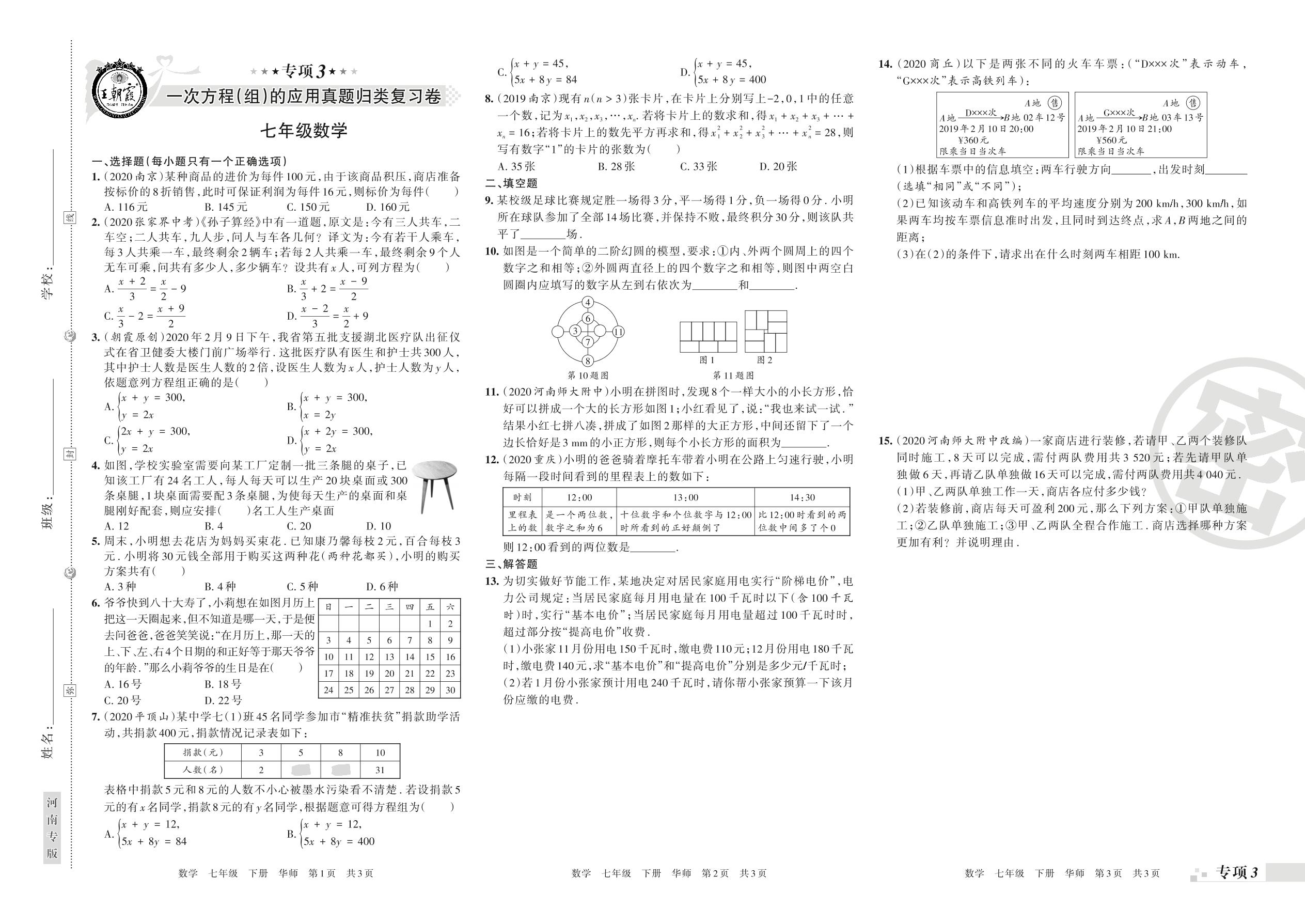 王朝霞期末专项卷——一次方程(组)的应用、一元一次不等式(组)的认识与解法真题归类复习七年级下册数学(华师版)【0】