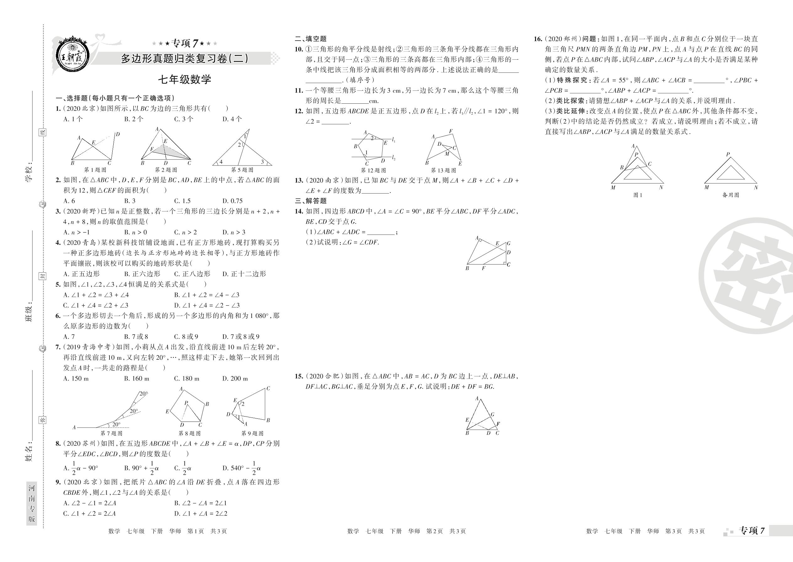 王朝霞期末专项卷——多边形、轴对称、平移与旋转真题归类复习七年级下册数学(华师版)_R210805145149【0】