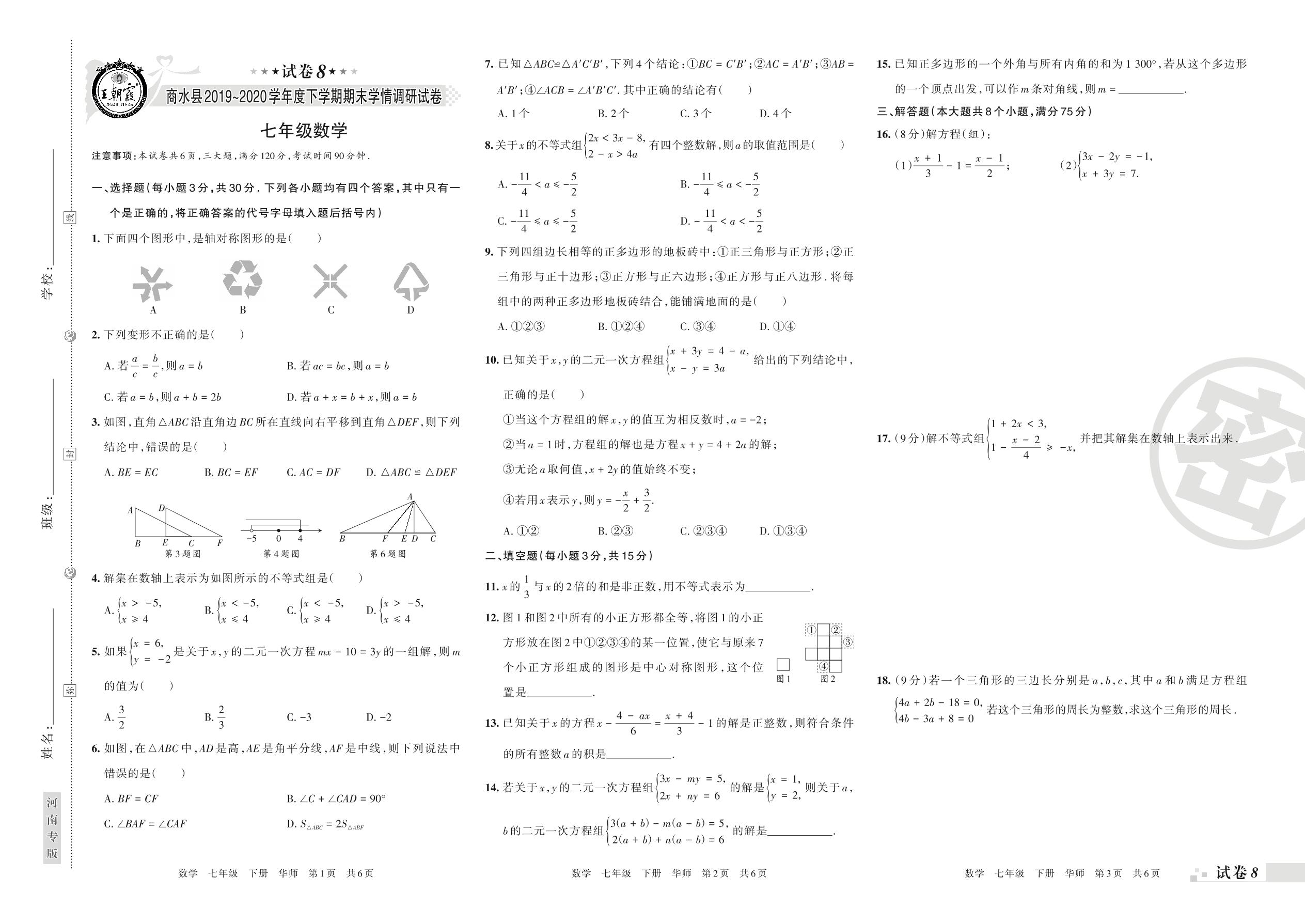 2019-2020学年第二学期周口市商水县七年级数学试卷(华师版)【8】