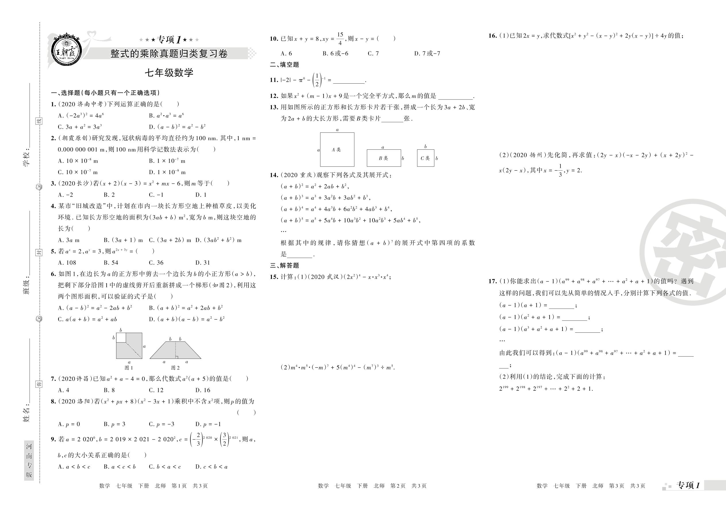 王朝霞期末专项卷——整式的乘除、相交线与平行线真题归类复习七年级下册数学(北师版)_R210805145250【0】