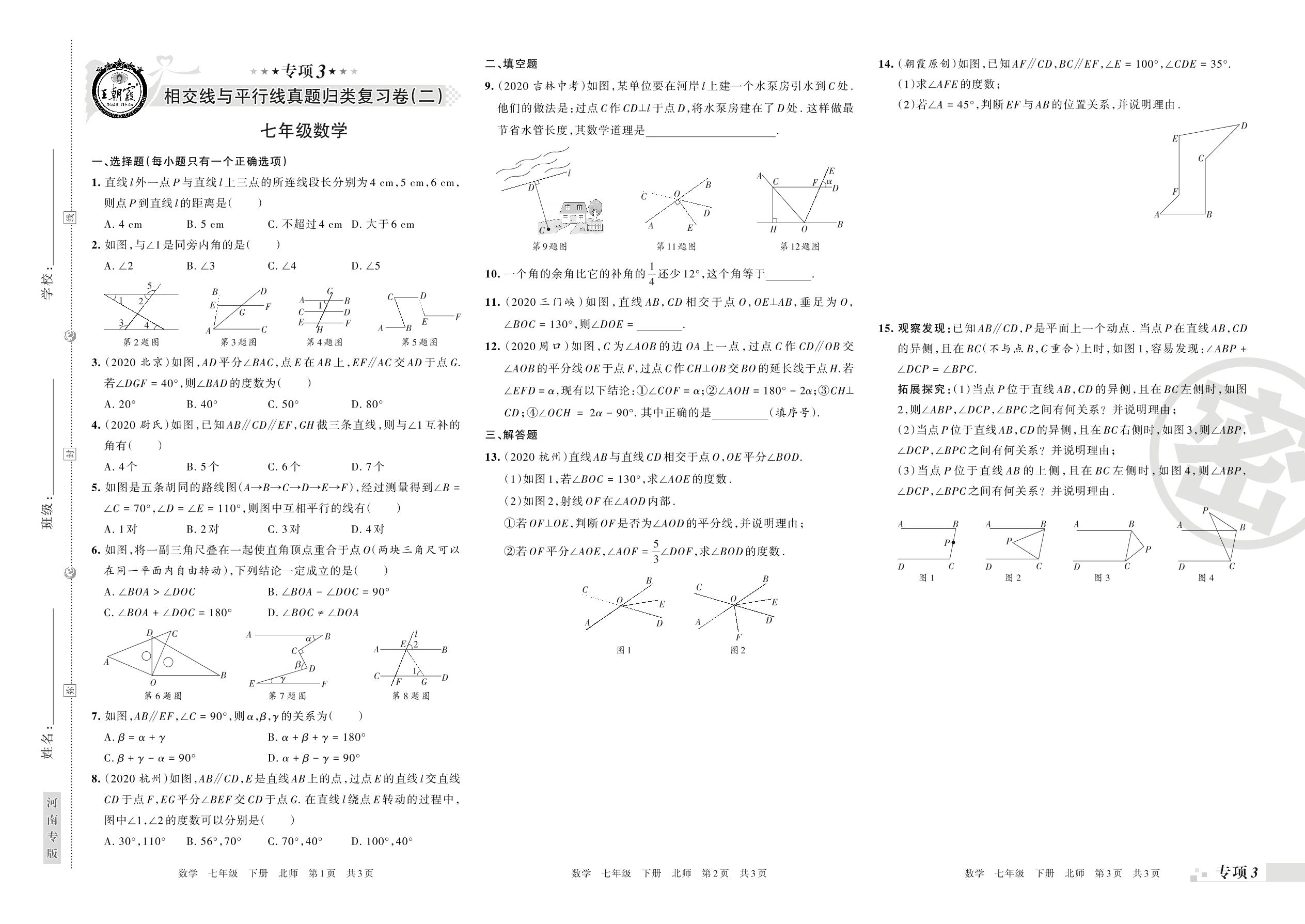 王朝霞期末专项卷——相交线与平行线、变量之间的关系真题归类复习七年级下册数学(北师版)_R210805145254【0】