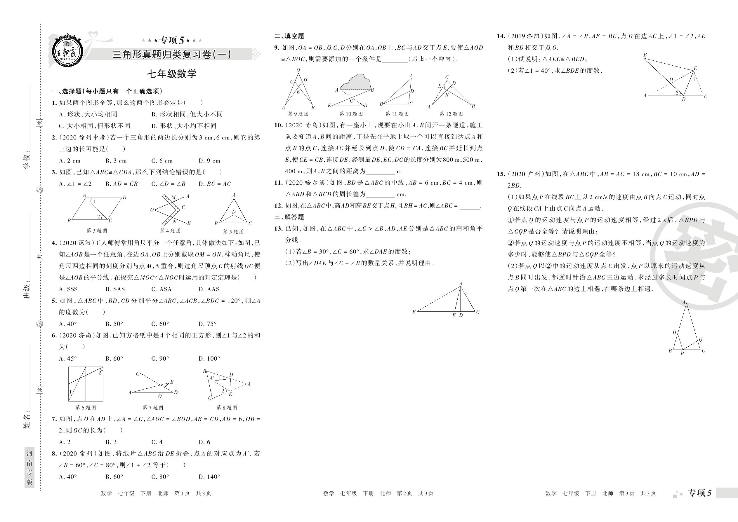 王朝霞期末专项卷——三角形(一)、(二)真题归类复习七年级下册数学(北师版)_R210805145300【0】