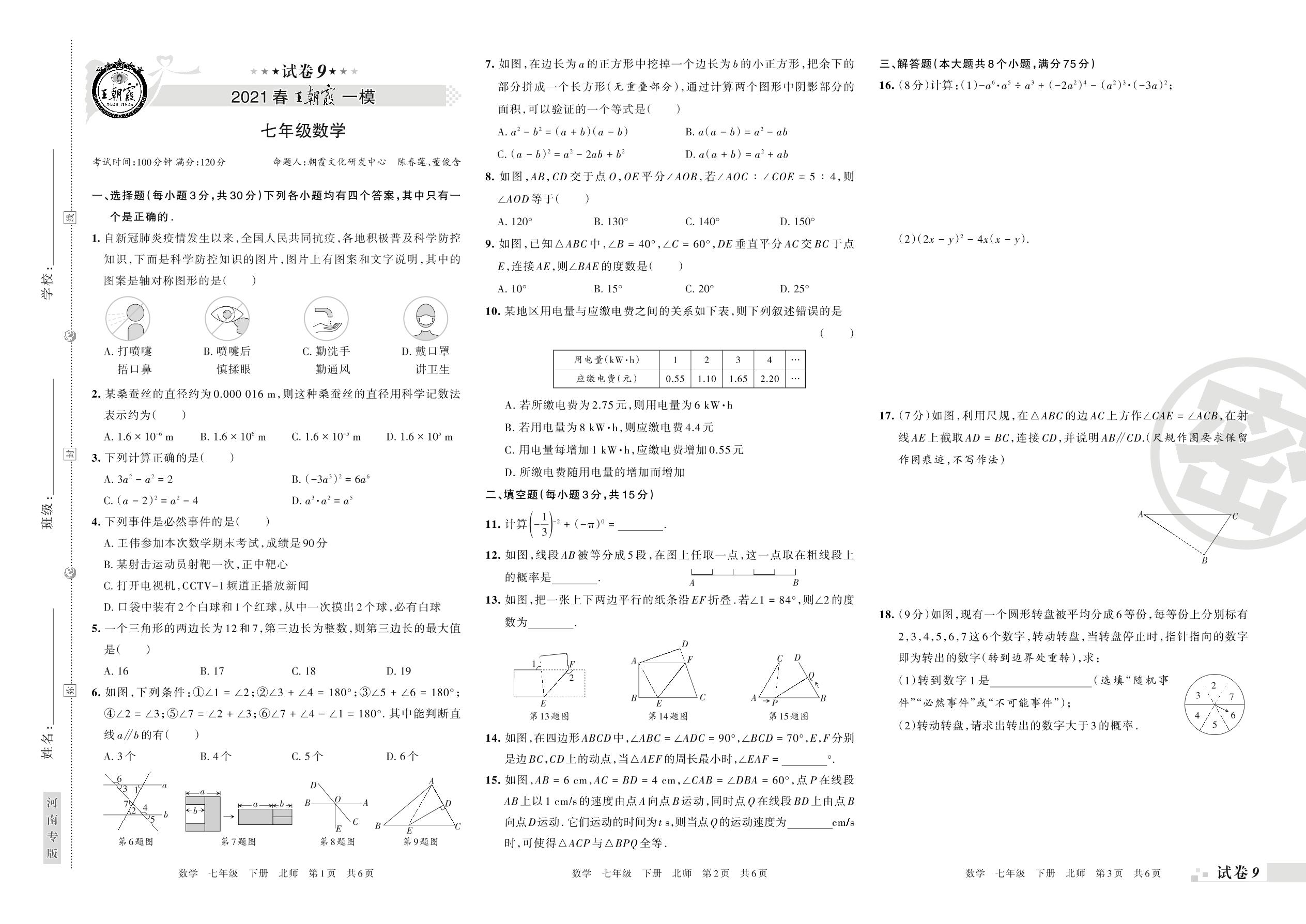 王朝霞期末模拟卷七年级下册数学(北师版)_R210805145425【9】