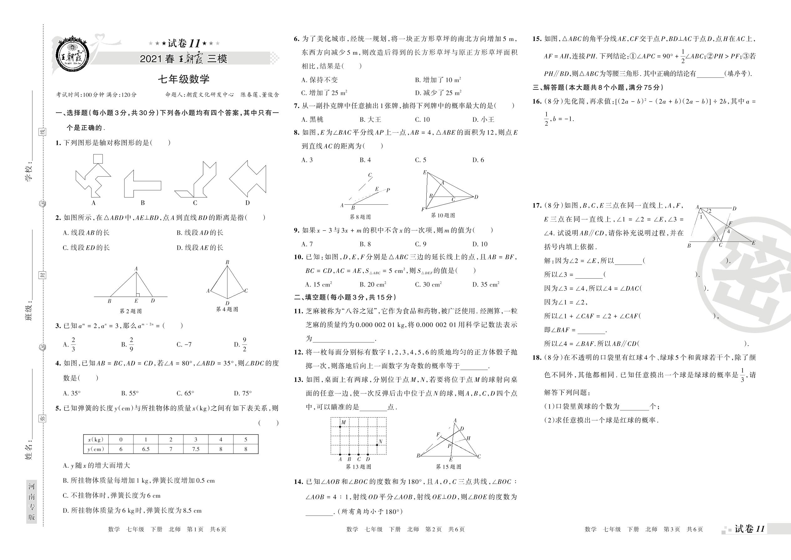 王朝霞期末模拟卷七年级下册数学(北师版)_R210805145443【11】