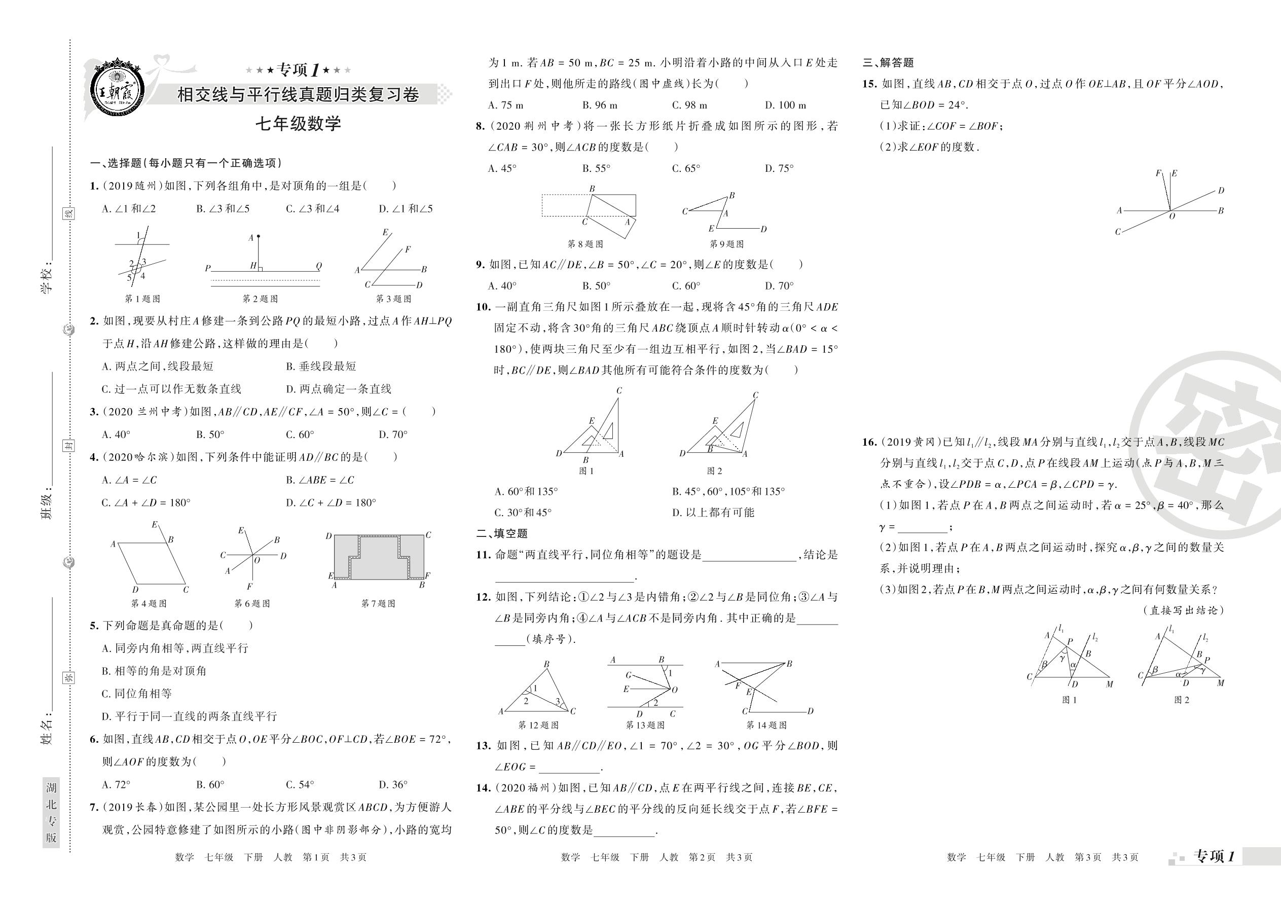 王朝霞期末专项卷——相交线与平行线、实数真题归类复习七年级下册数学(人教版)_R210805145449【0】