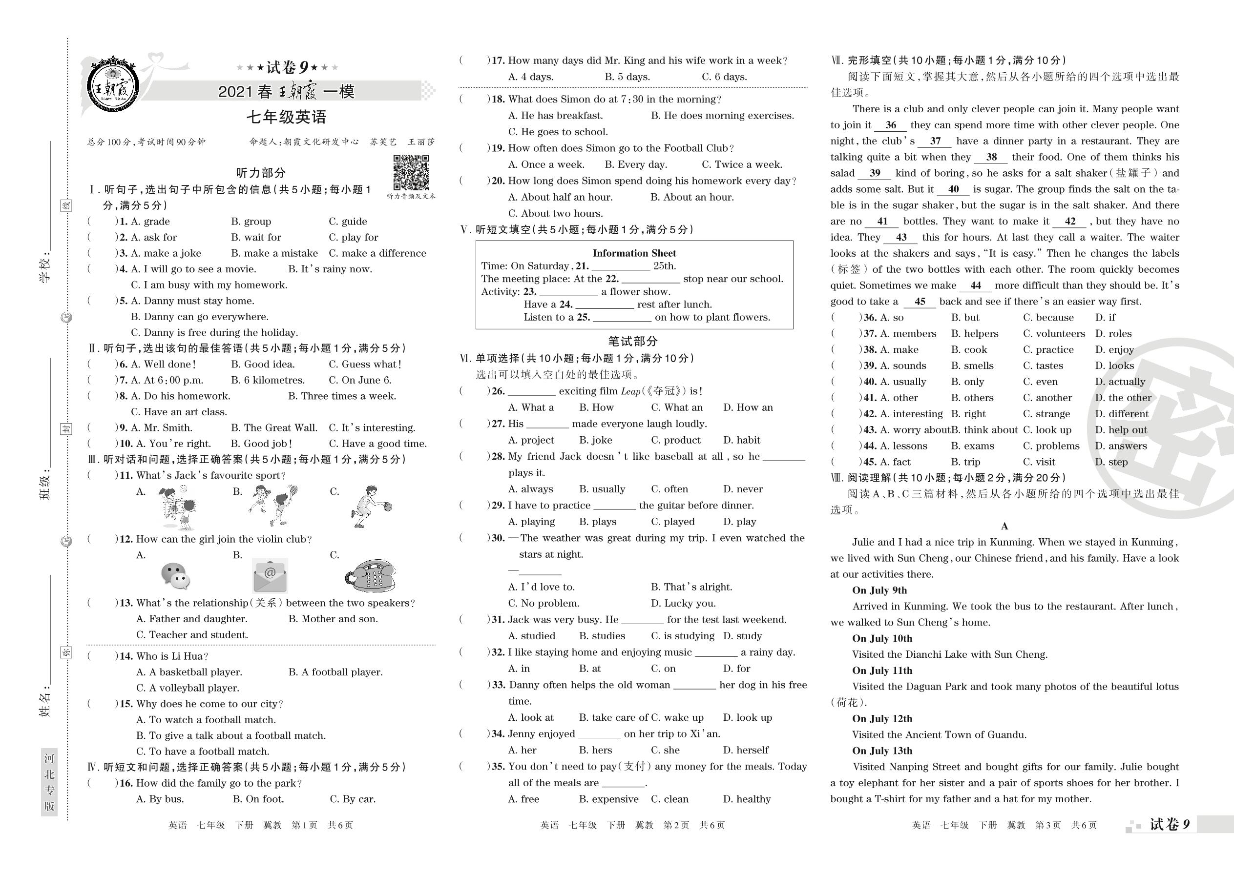 王朝霞期末模拟卷七年级下册数学(冀教版)_R210805150015【9】