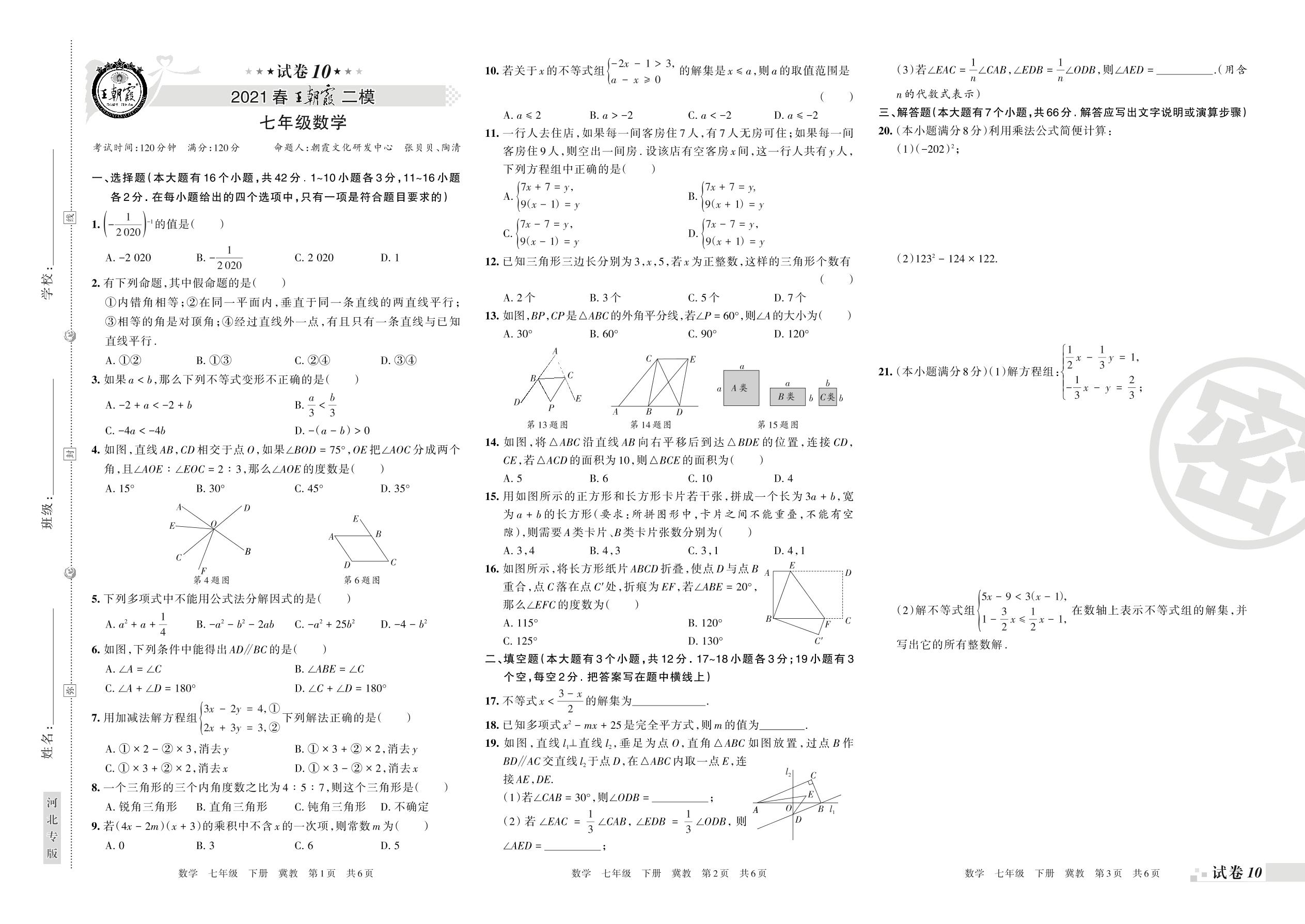 王朝霞期末模拟卷七年级下册数学(冀教版)_R210805150421【10】