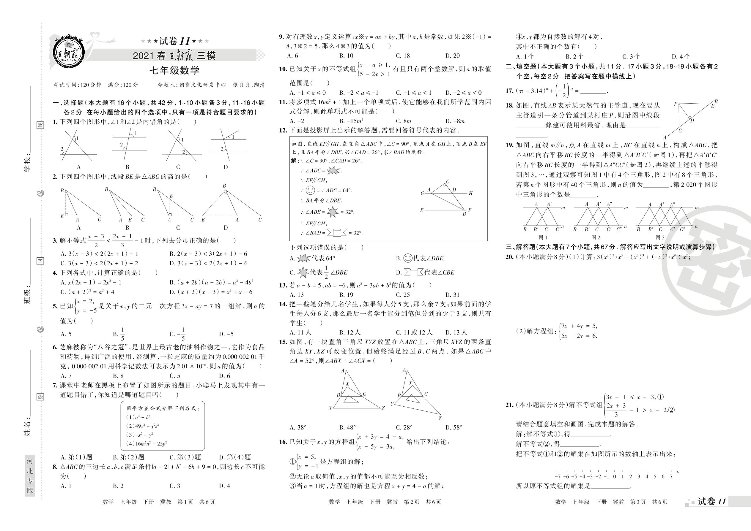 王朝霞期末模拟卷七年级下册数学(冀教版)_R210805150431【11】